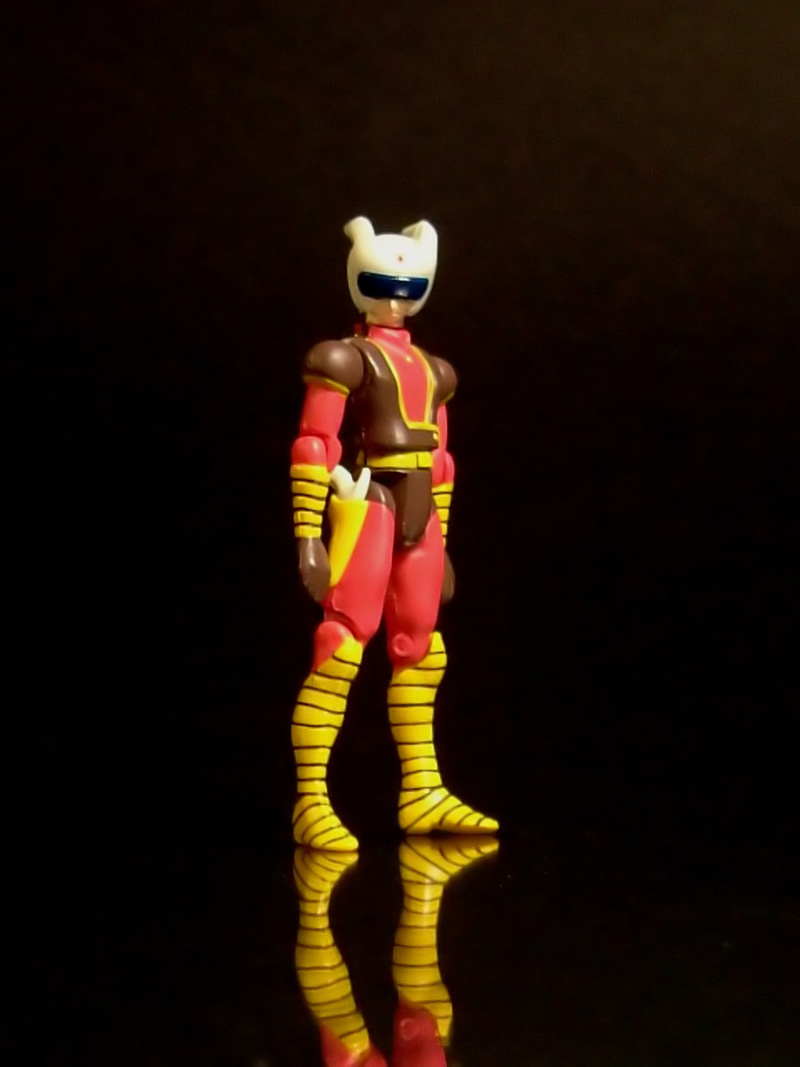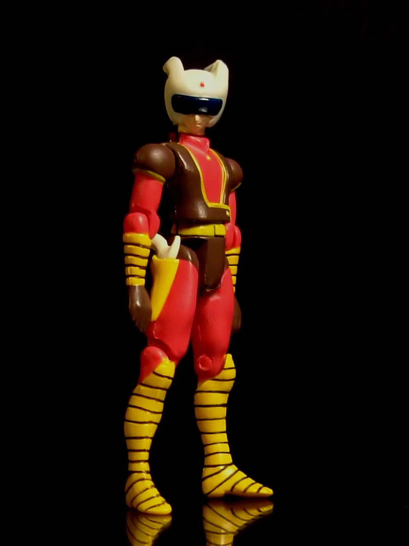 Si apre la scatola e ci troviamo di fronte alla fiera del riciclo dal momento che il grosso contenitore in polistirolo che la occupa per intero è esattamente lo stesso visto anni fa con la bella idea della grossa Zeta impressa sul coperchio. Aperto il blister troviamo, nei relativi alloggiamenti, il pilder con la punta della coda debitamente protetta da una cannuccetta in pvc, la figurina di Koji nel relativo sacchettino di plastica trasparente e la basetta in plastica nera (esattamente la stessa del px-01). Come al solito è presente (pur non essendocene bisogno) uno scarno libretto illustrativo costituito da un semplicissimo foglio A4 piegato in due metà e,alloggiato nella stessa bustina, l'adesivo applicabile sulla basetta con nome e codice del modello.
