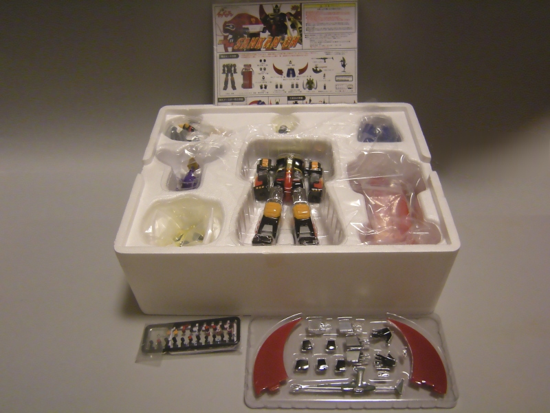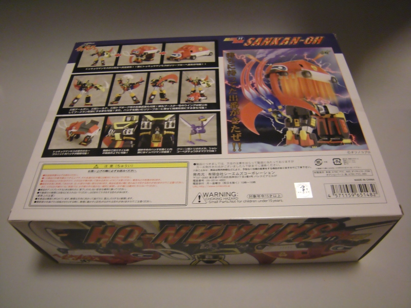 Una volta aperta la confezione ci troviamo di fronte a un sarcofago di polistirolo. Una volta tolta la copertura superiore, ecco il contenuto interno: Al centro della confezione si trova il Sankan-Oh in conformazione robot. In alto, in uno scomparto separato, é riposta la sua testa. Alla sua sinistra troviamo in alto il Sankan Tomahawk, al centro la Sharekobe Dacho e in basso il Sankan Shield. Alla sua destra troviamo in alto il Booster e in basso la Relief Car. Sul retro della confezione di polistirolo é inserito un blister di plastica in cui si trovano le due ali per il booster, quattro torrette mitragliatrici (due opache e due cromate), le varie mani intercambiabili, la scaletta che fuoriesce dalla proboscide del Tokkyu Mammoth, il Sankan Armgun, una miniatura di Ippatsuman e infine - sotto il blister - i tappini opzionali per coprire i buchi in cui alloggiano le viti. Tale blister é inserito in un vano del sarcofaco in polistirolo e rimane alloggiato per semplice incastro, senza intervento di nastro adesivo.