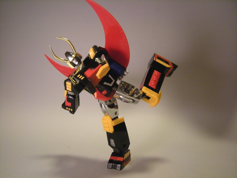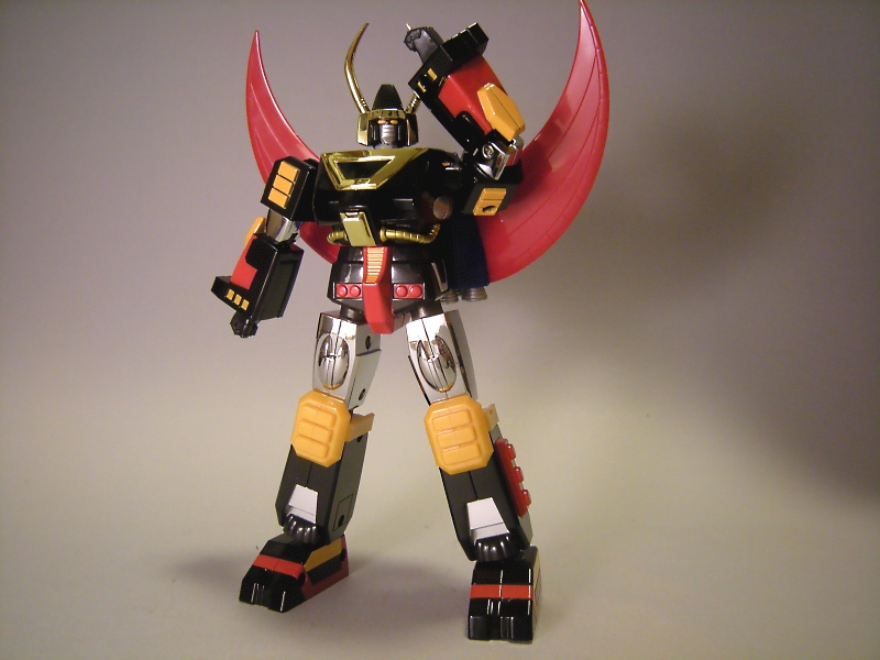 Per quanto riguarda gli snodi, oltre a quello della testa di cui si é già discusso, il modello é dotato di snodo a scatto solo per la rotazione delle braccia. Tutti gli altri snodi sono ad attrito. Quindi abduzione e torsione delle braccia, flessione del gomito, rotazione del busto, rotazione ed estensione delle gambe, flessione delle cosce, rotazione e inclinazione dei piedi. Mancano la flessione plantare e il sollevamento delle spalle, dimostrando quindi che il Gyakuten-Oh ne era provvisto solo per questioni di trasformazione. Sempre per questo motivo le spalle del Sankan-Oh possono ripiegarsi all'indietro. E' uno snodo che in fase di posizionamento ha un'utilità minima, tuttavia bisogna farne notare un grave difetto: Le spalle non hanno alcun fermo, percui ruotano liberamente all'indietro al minimo tocco. Dato che dietro di loro si trovano le ali del Dangan Booster, appena i due elementi entrano in contatto provocano il distaccamento della testa del robot.