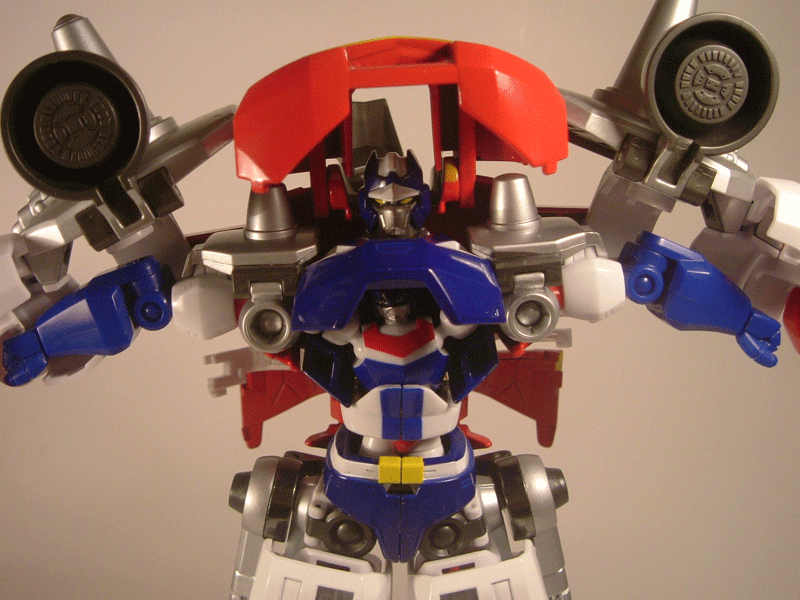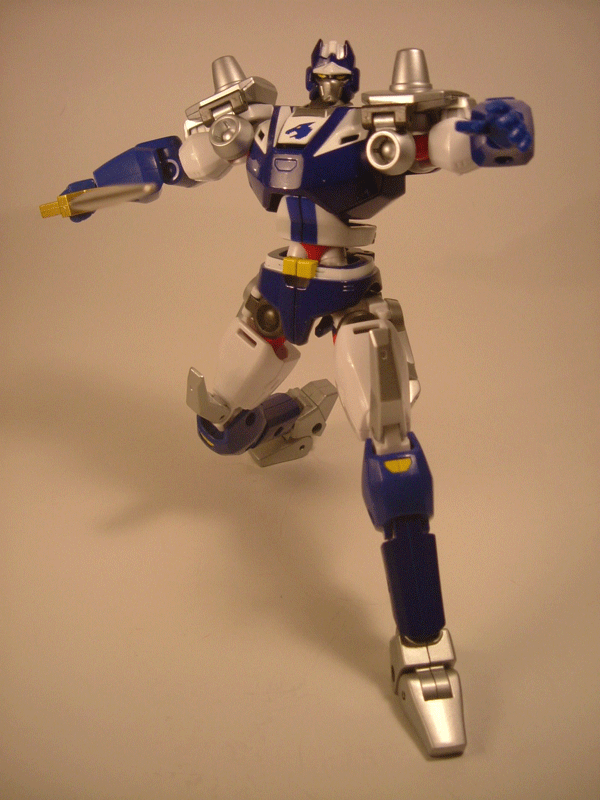 Anche assemblato Baikanfu ha una posabilità invidiabile, garantita dallo snodo sulla schiena, dalla grande mobilità delle caviglie e dal piede flessibile. Se una critica va mossa è certamente per i pugni del Baikanfu, un po' troppo instabili sui loro perni anche se a detta di alcuni dipende da come vengono applicati. Io ci ho provato in più di un modo anche facendo forza ma il risultato è sempre stato lo stesso, cascano un po' troppo facilmente maneggiandolo (non che non si tengano su ma si poteva fare di meglio). Il robot diventa ancora più posabile se invece del Kenryu introduciamo nel Baikanfu la apposita dummy part che riproduce il tronco del Kenryu stesso limitando in minor misura le escursioni di alcune articolazioni cruciali come quella della spalla e quella dell'anca.