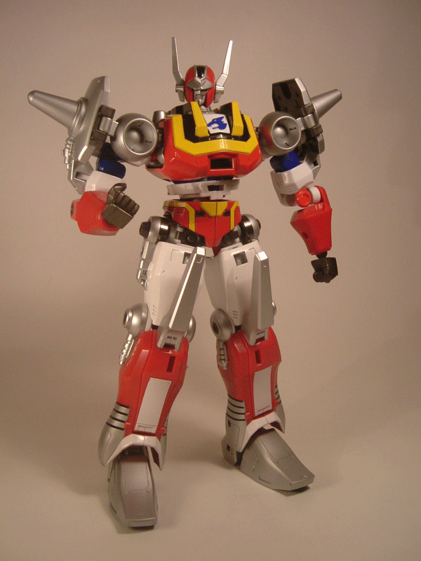 E' il robot in cui si va ad alloggiare Rom nell'assemblamento di Baikanfu. Soppesandolo si ha una rassicurante sensazione di pesantezza essendo quasi interamente in metallo. L'alloggiamento di Rom al suo interno è assai semplice, è sufficiente e aggiungerei indispensabile (pena una chiusura imperfetta degli alloggiamenti se non addirittura rotture in caso contrario) rispettare i punti di aggancio indicati dal libretto di istruzioni che in questo senso è chiarissimo. Kenryu ha in dotazione una spada, 4 paia di mani intercambiabili e uno scudo. Anche una volta inserito al suo interno Rom, Kenryu conserva una posabilità invidiabile come testimoniano le foto.