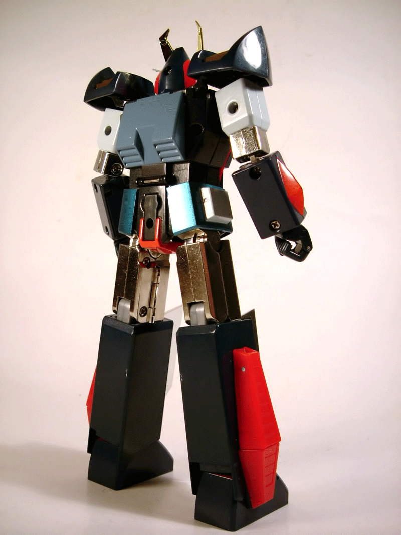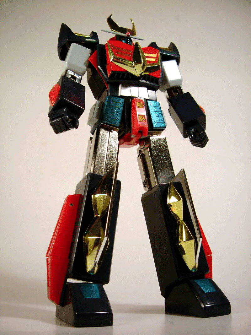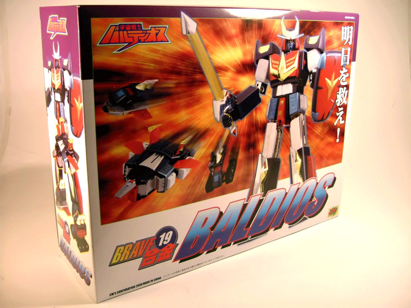 Anno 1980, in Giappone la Ashi Production pubblica un anime robotico in 39 puntate la cui trasmissione, tra il 30 giugno di quell'anno e il 25 gennaio 1981, verrà interrotta dopo il trentunesimo episodio per effetto dello scarso successo in termini di ascolti. Baldios (titolo originale Uchū Senshi Barudiosu) narra le imprese dell'omonimo robot componibile derivante dall'unione dei 3 mezzi Pulser Burn, Baldy Prize e Cater Ranger.In Giappone la serie verrà ad avere un finale grazie ad un successivo film di 117 minuti edito nel 1981 da Toei Animation. Nel nostro paese, nonostante gli insuccessi in terra natia, Baldios ha avuto un discreto riscontro e molti appassionati italiani da tempo attendevano che qualche casa produttrice si decidesse a sfornare quello che a tutti gli effetti era e rimane uno dei robottoni della nostra infanzia cui ci sentiamo maggiormente affezionati.Tali preghiere sono state esaudite dalla CM'S Corporation che ha inserito il Baldios come numero 19 tra i soggetti della serie Brave Gohkin, gamma di toys in metallo che sia l'anno scorso che nel 2008 ha avuto modo di far parlare in modo assai positivo di se con l'uscita di ottime realizzazioni tra le quali spiccano bellissime riproduzioni di soggetti come Goshogun, Griffon, Ingram, Sankan Oh e Gyakuten Oh. Con queste buone premesse c'è da chiedersi se il fatto che la produzione di tale soggetto sia avvenuta da parte di CM'S e non di un'altra casa (Bandai tanto per dirne una....) sia una fortuna o piuttosto l'esatto contrario. Personalmente propenderei,purtroppo, per la seconda di queste 2 ipotesi, e con questo commento che anticipa abbastanza chiaramente il mio giudizio andiamo a scendere nel dettaglio............. Quello di cui parleremo è la versione normal del modello,a breve entrerà in commercio una seconda versione a tiratura limitata definita anime color ma che del colore che il Baldios ha nella serie animata, a giudicare dalle prime foto in anteprima, presenterebbe ben poco.