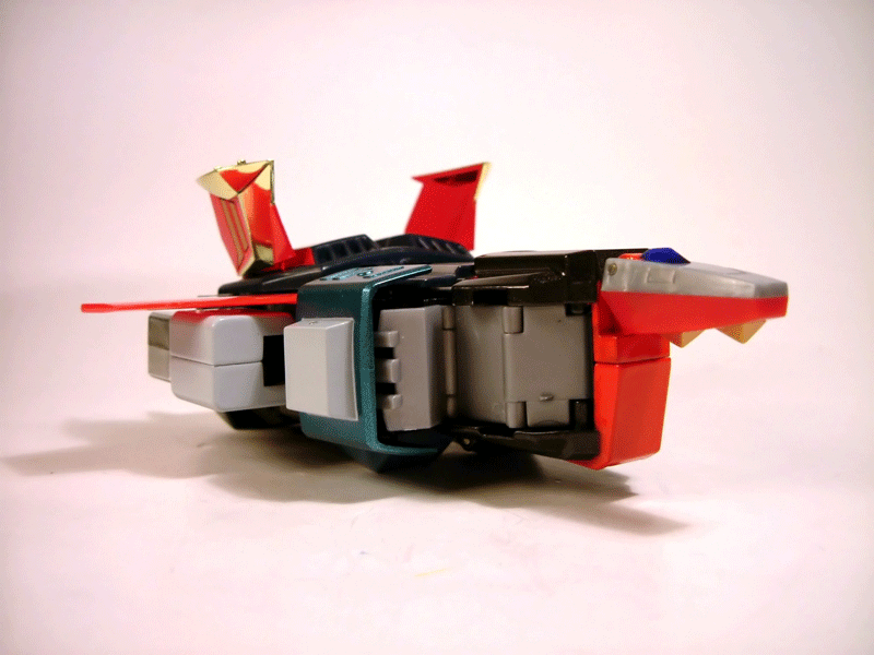 Premesso che lo avrei gradito più alto di almeno 2-3 cm partiamo subito col dire che questo Baldios non è poi quel nanetto che poteva sembrare a giudicare dalle prime foto, più precisamente il modello una volta assemblato misura all'incirca 19 cm, una altezza quindi contenuta per un componibile, ma comunque non è piccolissimo.Il peso è effettivamente modesto, 300 grammi tondi tondi, meno quindi di un semplice gx-01r nonostante l'altezza sia superiore. Tale peso è ovviamente condizionato da esigenze di trasformabilità, le gambe infatti sono cave per permettere l'estrazione con sistema telescopico delle restanti componenti dei mezzi che formano le gambe del robot. Le parti in metallo sono i piedi, le cosce, una piccola parte del tronco e le braccia; sono invece in plastica le gambe con i relativi inserti, gran parte del tronco, gli avambracci e la testa. La posabilità del robot purtroppo non è il massimo. Complice la bizzarra trasformazione che nell'anime caratterizza il mecha i piedi di questo modello di fatto non hanno uno snodo dal momento che non si articolano alla gamba ma restano ancorati ad essa tramite gli inserti rossi laterali rispetto ai quali hanno solo un modestissimo movimento di rotazione; le caviglie di fatto sono bloccate o quasi e in pratica non si piegano. I piedi, per effetto della modalità di trasformazione, non hanno una pianta e da sotto sono aperti. Ciò che veramente mi ha infastidito è stata la mancanza di un paio di semplicissimi tappi per la chiusura della pianta del piede, cosa fattibilissima cui CM'S non ha provveduto denotando una cura dei dettagli a dir poco modesta. Le ginocchia si piegano discretamente ma per l'asimmetricità della trasformazione lasciano intravedere dettagli diversi, se volete un consiglio è preferibile flettere il ginocchio destro dal momento che piegando il sinistro si intravede uno dei cingoli a scomparsa del Cater Ranger, effetto esteticamente osceno. Esteticamente discutibili anche le grosse cerniere che fanno bella mostra di se sulla superficie interna della cosce, una maggior miniaturizzazione sarebbe stata cosa certamente gradita da molti. Alle anche le cosce hanno possibilità di allargarsi molto ma per effetto della strampalata progettazione di questo aggancio se si abducono eccesivamente fuoriescono dal loro alloggiamento e le si devono reinserire. Il modo in cui è stato concepito l'aggancio dei 3 moduli è infatti forse il punto peggiore dell'intero modello, di fatto le cosce si attaccano al bacino tramite due pernetti a molla che si ingranano in un alloggiamento anch'esso in plastica ancorato alle paratie che costituiscono la parte laterale del bacino, roba da brividi. Ogni volta che ho agganciato e sganciato le gambe ho temuto di spaccare tutto quanto e l'insieme da comunque una sinistra sensazione di fragilità sulla base della quale il mio consiglio è quello di effettuare la manovra il meno possibile; in altre parole assemblate i vostri mezzi, guardateveli, fatevi le vostre considerazioni dopo di che eseguite la trasformazione in robot e non toccate più nulla. Purtroppo l'instabilità dell'anca e la fuoriuscita delle cosce dal proprio alloggiamento quando le si allarga troppo non sono l'unico aspetto "instabile" del modello nel quale, quando lo si maneggia è facile vedersi aprire il petto o spuntare le ali del Pulser Burn dai margini laterali del torace data la più totale mancanza di fermi per queste parti. Le spalle hanno invece una grandissima mobilità (sia in rotazione che in abduzione) dettata dalle esigenze di trasformazione in Pulser Burn e rappresentano l'unica articolazione a scatto del modello. Le braccia ruotano rispetto alle spalle e gli avambracci si flettono a 90 gradi. Altra nota dolente sono le mani. Ci lamentiamo degli ultimi gx perchè poveri in mani di ricambio ma CM'S è riuscita a fare peggio di Bandai dotando questo Baldios di un solo paio di mani con pollice fisso e restanti dita articolate. Anche la dotazione in accessori non è certo delle migliori ma a onor del vero bisogna ammettere che ben poche erano le armi che il robot usava nel cartone essendo principalmente rappresentate dalla spada a impulsi e dai cannoni laser sulle spalle (qui applicabili rimuovendo la copertura dorata di queste ultime). Il caccia nemico, minuscolo e di plastichina traslucida, simile a una razza, era peraltro evitabile non aggiungendo alcun valore al modello. I colori usati mi piacciono tanto e trovo molto bello l'accostamento del rosso e del dorato che considero migliore del giallo il quale, a mio avviso, avrebbe trasmesso una sgradevole sensazione di giocattolino. Il blu è effettivamente molto scuro, ma indipendentemente dalle critiche mosse non si allontana molto dal colore che caratterizza il Baldios nell'anime, anch'esso molto scuro. Quindi a mio avviso i colori usati sono belli, ciò che invece è veramente eccessiva è la presenza di innumerevoli segni di distacco dalle sprue delle varie parti che qua e là spiccano un po' ovunque sul modello. Detto del Baldios passiamo ai mezzi.La trasformazione è semplice e divertente nella sua esecuzione e ingegneristicamente valida. Ho molto apprezzato il sistema telescopico per l'estrazione di parti sia del Baldy Prize che del Cater Ranger, così come la presenza di parti a scomparsa (leggi i cingoli del Cater Ranger). Il progetto di base è quindi a mio avviso buono,ciò in cui CM'S è invece clamorosamente mancata sono i dettagli finali per cui dopo aver apprezzato la tecnica impiegata nella trasformazione ci si trova di fronte a mezzi che fanno della instabilità più totale la loro caratteristica principale. Nel Pulser Burn le ali non hanno punti di blocco per cui basta un minimo spostamento perchè queste si discostino da quella che dovrebbe essere la loro sede normale. Nel Baldy Prize spesso la punta del piede tende ad alzarsi avendo difficoltà ad agganciarsi al sottostante alloggiamento e le ali sono formate da 4 elementi articolati tra loro che si 