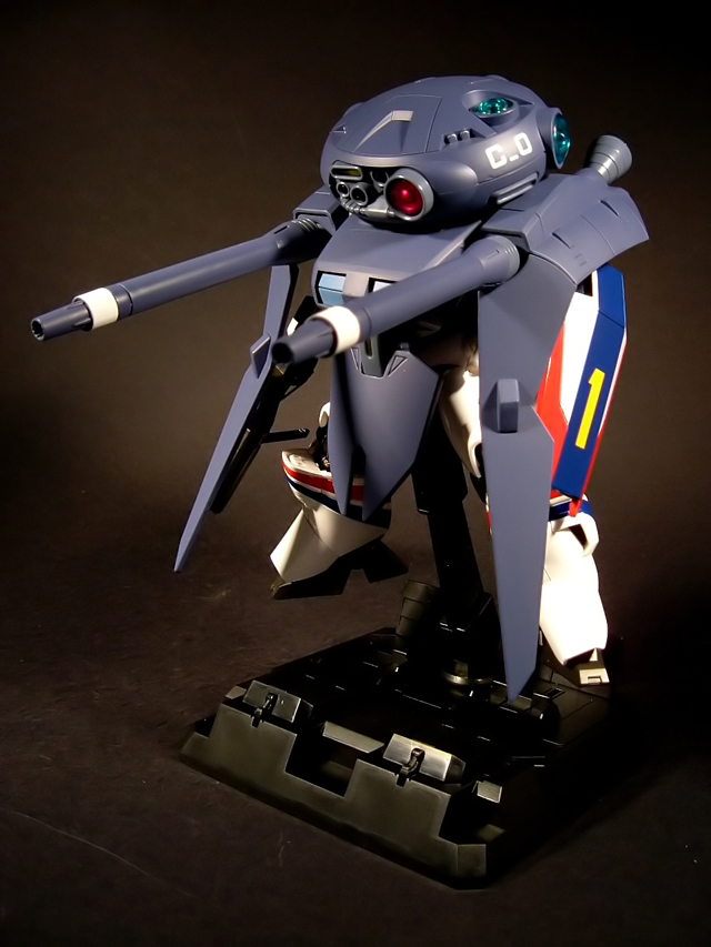 E' composto da due grandi blister in plastica trasparente impilati l'uno sull'altro che, accolti da un vassoio di cartoncino, occupano per intero la scatola. All'interno di quello superiore troviamo, nei relativi alloggiamenti, lo scheletro (posizionato centralmente e con pugni chiusi già applicati) e, localizzate tutte intorno a quest'ultimo, le varie parti dell'armatura da applicare costituite da gambe, cosce, bacino (suddiviso in 3 parti), torace (scomposto in 2 metà), spalle, avambracci e testa (con antenne in pvc morbido già montate). Tra gli accessori, molto abbondanti, abbiamo nell'ordine: una throwing bomb, l'hand rail gun (il fucile), il bazooka e il corpo principale del Cavalier 0 scomposto in due parti. Il resto della dotazione del modello alberga nel secondo blister, posizionato sotto a quello appena descritto, in esso trovano alloggiamento le mani accessorie (1 paio aperte, 1 paio per l'impugnatura di coltelli e spade, una mano destra per l'impugnatura del fucile), 2 beam saber ed i relativi manici, il manico del beam lancer, 5 caricatori di riserva per il fucile, un paio di assault knives (i coltelli), il lifter scomposto in due parti, lo scudo ed il relativo manico, il pannello posteriore ed i cannoni del Cavalier 0, un paio di antenne in plastica rigida di ricambio, 4 panneli ed un braccio in plastica nera. Queste ultime parti, una volta montate sulla basetta (posta sotto questo secondo blister in una bustina di plastica trasparente ad esso ancorata con del semplice scotch), forniscono un espositore pratico e funzionale che riproduce la rampa di lancio del robot e tale da consentire suggestive esposizioni in pose di volo. Anche in questo caso non poteva mancare il libretto illustrativo, molto semplice e schematico ma comunque esaustivo.
