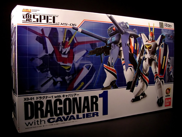 Subito dopo l'uscita dello SPEC XS-05, e cioè la versione opening silhouette del Dragonar, Bandai propone per la medesima linea e come soggetto immediatamente successivo con immissione sul mercato a distanza di appena due mesi (ottobre 2007 il primo e dicembre 2007 il secondo), lo stesso Dragonar, ma con l'aspetto tipico della serie in cui il robot compare e che da lui prende il nome, e cioè l'anime Metal Armor Dragonar, trasmesso in Giappone a cavallo tra 1987 e 1988. Il mecha presenta infatti due diverse sembianze che di poco differiscono tra di loro rispettivamente nella sigla (da cui opening silhouette) e negli episodi. Bandai ne ha approfittato per produrre entrambe le varianti fornendo in dotazione, in questo XS-06, anche l'XC-00 Cavalier 0, armatura di potenziamento al cui uso il robot ricorrerà durante la serie. Se per motivi personali trovo esteticamente migliore la opening silhouette che avevo acquistato in precedenza, questo XS-06 non è assolutamente da buttare via ed una volta avuta l'occasione buona (leggi prezzo favorevole), non ho esitato a farlo mio per completare il quadretto Dragonar in cui già avevo inserito l'XS-05, l'XS-11 Falguen ed il recente Dragonar Max Factory. Procediamo quindi ad una rapida analisi del modello......