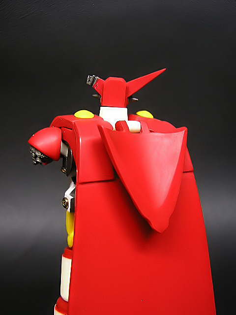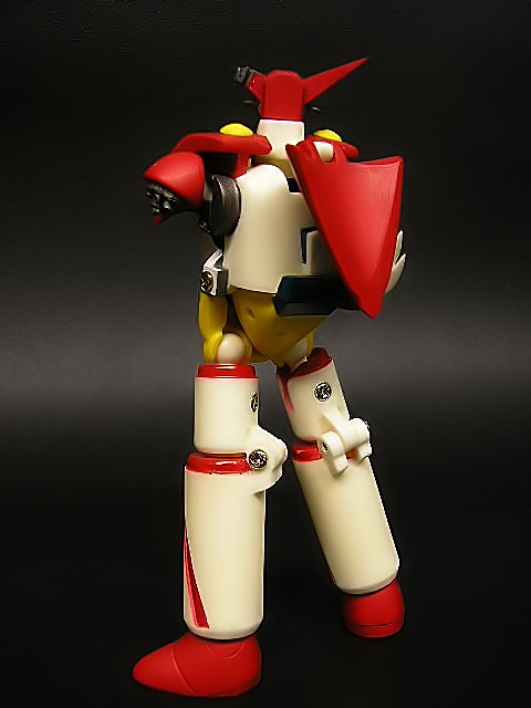 Combinare tra loro le Getter Machines è facile e divertente: poche mosse ed ecco che il ns Getter One prende forma. Lo stacca-e-attacca è limitato alla mano, ai piedi e alle ali che devono essere inseriti (non senza un po’ di difficoltà iniziali per l’attrito delle parti) nei loro alloggiamenti. Una volta completo avremo un Getter One alto 10 cm., sufficientemente snodato e rifinito. In questa versione manca il braccio sinistro (sostituito da un moncherino), mentre una delle “corna”, il ventre ed il bacino riportano i danni della Battaglia Finale. La posabilità è discreta, ma a lungo andare gli attriti resina contro resina rendono le giunture un po’ molli. Inoltre consiglio di tenere questo modello al riparo dalla luce diretta del sole, perché le parti bianche potrebbero tendere ad ingiallire.