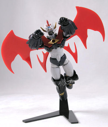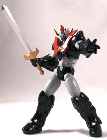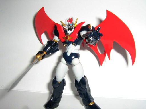 braccia, gomiti, mani, busto, attaccatura delle gambe, giunture delle ginocchia, piedi) e per un corredo di accessori di tutto rispetto (mani aperte, mani a pugno, mani per tenere le spade, due Kaiser blade piccole, una Kaiser blade grande, lo scrander, una piattaforma nera con protesi per simulare le fasi di volo o sospensione in aria).La confezione è di dimensioni contenute (19x14x9 cm), tranne che per la profondità, cosa dovuta al fatto che, all’interno della scatola, troviamo due scomparti di plastica trasparente sovrapposti, nel primo dei quali è alloggiato il modellino( con accanto la spada grande), mentre nel secondo si colloca lo scrander. Il resto degli accessori è contenuto, invece, in una bustina sigillata trasparente, alloggiata sotto la parte cava del secondo scomparto in plastica.Mentre il modellino in sé, data la forma massiccia del robot, si presenta sufficientemente compatto e maneggiabile senza problemi, più delicate sembrano le spade e lo scrander, che danno l’idea di potersi rompere facilmente se maneggiati grossolanamente. Alcuni punti di snodo, inoltre, se sollecitati eccessivamente potrebbero tendere ad allentarsi soprattutto per quanto riguarda le braccia.La figure, però, è sicuramente d’effetto per le pose che permette, e, per chi preferisce il modellini di dimensioni più piccole, è certamente un must, vista anche la rilevanza del personaggio. Nel suo genere di dimensioni, infatti, il Mazinkaiser Revoltech non ha praticamente una concorrenza seria: esistono solo due trading figure-gashapon Bandai, entrambi però non articolati (uno uscito per una delle serie Best Posing e l’altro in una serie dedicata agli OVA di Devilman e Mazinkaiser) e una figure in posa fissa con basetta della Banpresto; l’unico prodotto che gli si avvicina davvero è una action figure della serie Banpresto Super Robot Wars, mini kit componibili, articolata, ma uscita circa 10 anni fa, peraltro da colorare (non so se esiste anche la versione già colorata) e davvero estremamente rara da rintracciare, non solo in Italia.Va segnalato che questo Mazinkaiser Revoltech è stato prodotto anche in una versione limitata completamente nera, che però è costosa (sui 90 euro). In conclusione, qualche considerazione sui prezzi: il Mazinkaiser Revoltech che, ai tempi dell’uscita nel 2007, si trovava agevolmente tra i 20 e i 25 euro, oggi, diventato di meno agevole reperimento, è uno dei Revoltech che si è valorizzato di più assieme al Black Getter e, nei negozi, tende a collocarsi anche dai 50 euro in su, cosa che ovviamente lo rende meno appetibile. Quindi,
