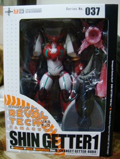 Tra i Revoltech di prima generazione (è il numero 37 della collana della Kaiyodo), lo Shin Getter1 è, probabilmente, uno dei più belli e meglio riusciti dal punto di vista della resa estetica. Leggermente più alto della media di questa serie, siamo sui 13 centimetri, completamente in PVC, questa action figure, come tutti modellini Revoltech, presenta numerosi punti di snodo(collo, spalle, braccia, gomiti, mani, busto, attaccatura delle gambe, giunture delle ginocchia, piedi) e si distingue per la coloratura lucente che valorizza le tonalità del rosso e del verde del robot. Ottimamente organizzato è anche il