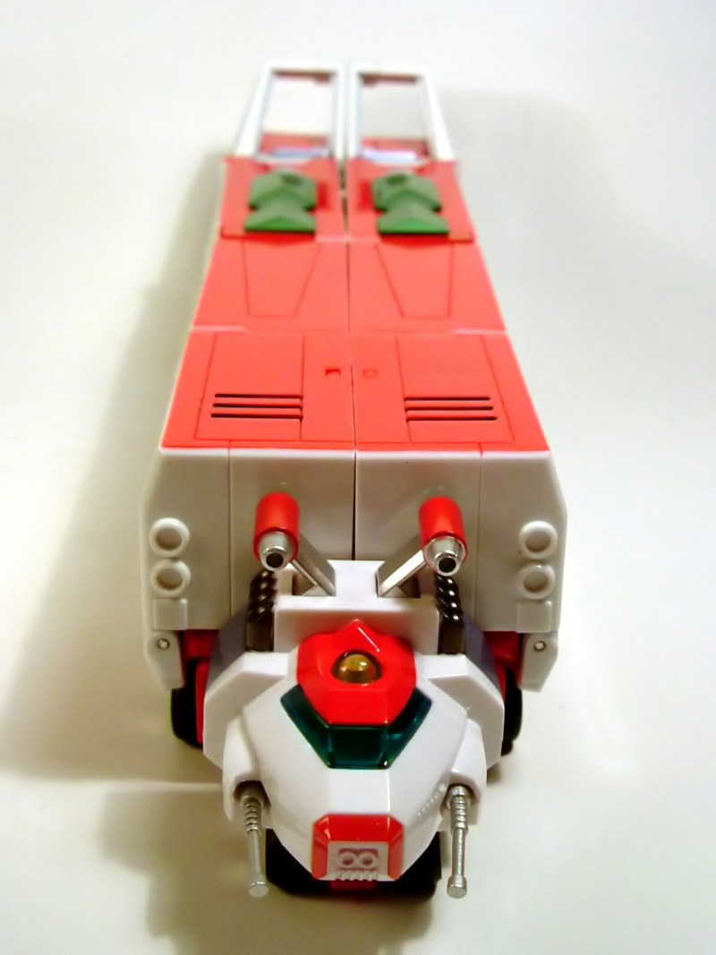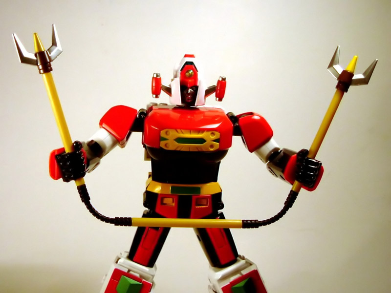 Just iiiiin!!! A questo grido la fine di settembre 2008 ci regala il quarantatreesimo soggetto della serie Soul Of Chogokin. Come avrete capito trattasi del famoso Tosho Daimos, da noi meglio conosciuto più semplicemente come Daimos o General Daimos, serie Toei-Sunrise in 44 episodi trasmessa in Giappone tra il primo Aprile 1978 ed il 27 Gennaio 1979 che va a completare una ideale trilogia aggiungendosi ai due precedenti Chodenji Robo Combattler V e Chodenji Machine Voltes V. Daimos, che deve il suo nome a una delle due lune di Marte, narra quindi la storia dell'omonimo super robot trasformabile nel camion Trancer e pilotato da Kazuya Ryuzaki deputato a proteggere la terra dagli alieni del pianeta Baam che intendono conquistarla.Tra i soc più attesi in madre patria, questo Daimos ha in parte risollevato le sorti di Bandai dopo la a mio avviso opaca prova del gx-42 Koutetsu Shin Jeeg. Come più avanti vedremo nel corso della recensione anche in questo caso sono però presenti alcuni punti d'ombra che stonano non poco soprattutto dovendo constatare come in assenza di essi il modello avrebbe raggiunto l'eccellenza assoluta. Ma andiamo per ordine..........
