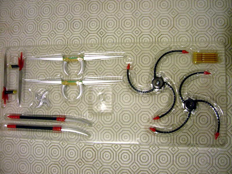 - un paio di doppie spade del drago, i pugnali laser, le scimitarre Daimos unibili nella scimitarra rotante, un paio di ruote della morte, il doppio boomerang, un paio di tridenti Daimos