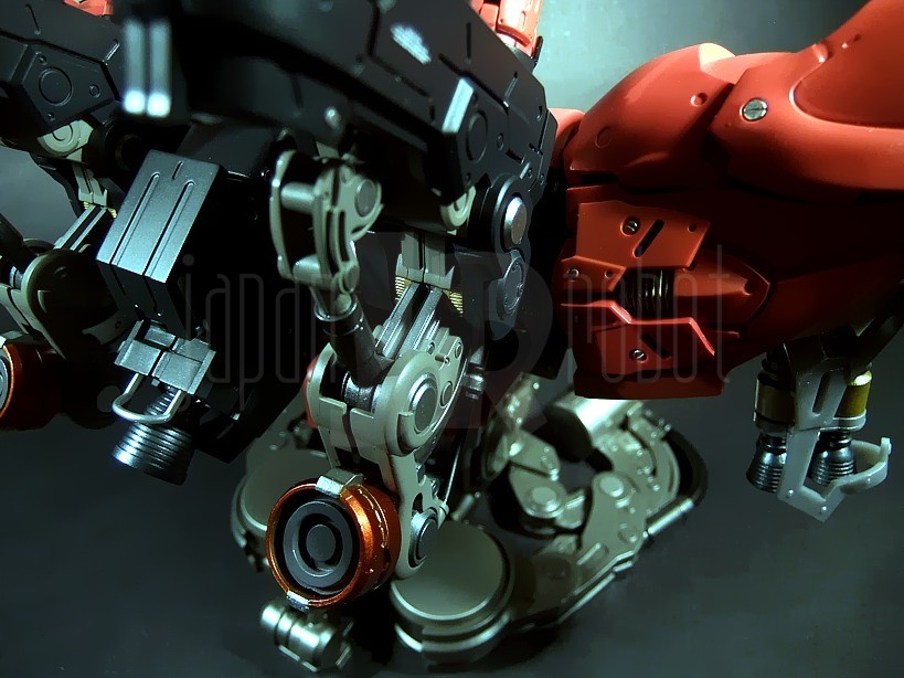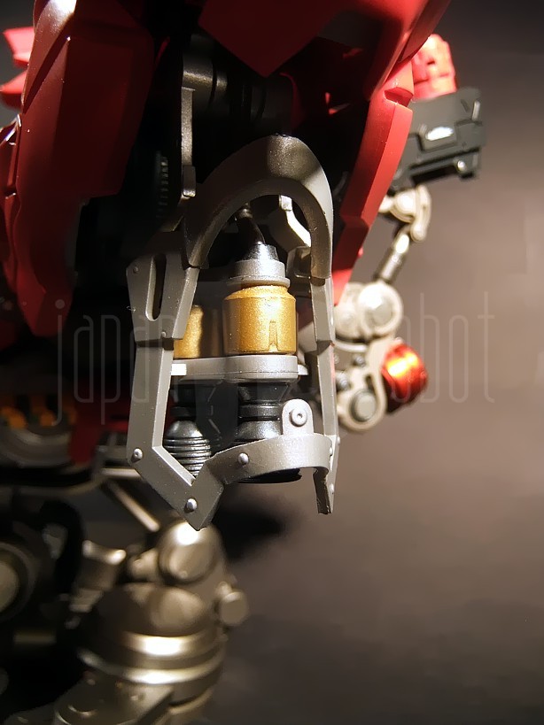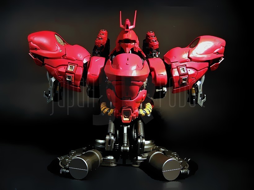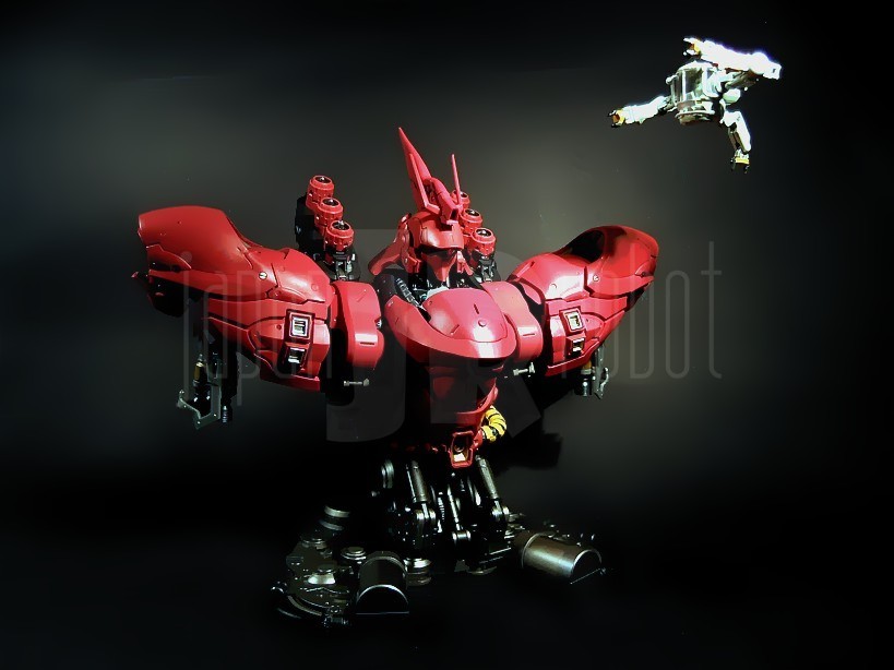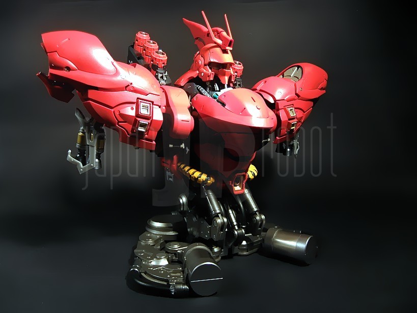 Il successore dell’ RX-93 Nu Gundam nella serie Formania è, abbastanza intuibilmente, quello che in “Mobile Suit Gundam: Il contrattacco di Char” (Kidō sensi Gundam: Gyakushū no Char), lungometraggio Sunrise del 1988, ne rappresenta l’avversario per antonomasia, e cioè l’MSN-04 Sazabi. Il Mobile Suit, costruito espressamente secondo le direttive di Char Aznable, nemico storico di Amuro Ray, allo scopo di ottimizzarne le capacità di eccellente pilota anche grazie ad un sistema in grado di minimizzare i tempi di reazione e le velocità di risposta del manovratore grazie alla tecnologia dello psycommu e dello psyco frame, si caratterizza per un colore rosso vivo più acceso del rosa carico tipico dello Zaku di Char e rappresenta di fatto il predecessore dello stupendo MSN-06 Sinanju, presente nella serie Mobile Suit Gundam Unicorn. Premessa la buona qualità del Nu Gundam già prodotto per questa serie, bisogna ammettere che in questo caso, complice un’estetica per me più accattivante, il giudizio sulla qualità di questi prodotti è ulteriormente migliorato anche per una maggiore cura di alcuni dettagli rispetto alla prima uscita.