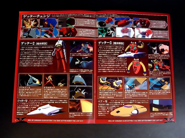 - Il solito libretto illustrativo a colori, stringato e semplice come diversamente non potrebbe essere data la relativa semplicità del modello stesso. E' corredato da belle immagini direttamente tratte dall'anime che fanno riferimento non solo al getter 1, ma anche ai getter 2 e 3 (che sia un presagio di alcuni dei soc che ci attendono?).