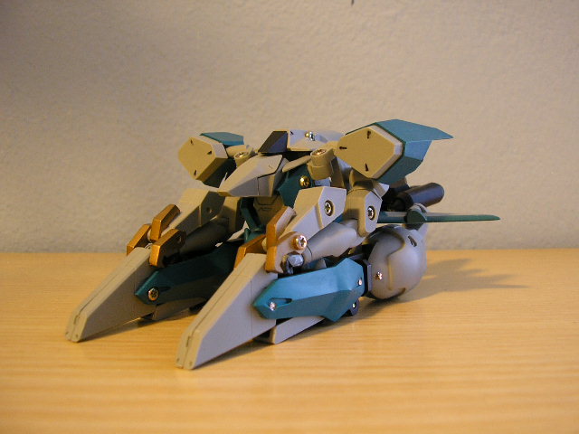 I quattro veicoli si presentano nella già conosciuta resina precolorata, rifiniti solo in alcuni punti da vernice (come finestrini, occhi, pannellature), adesivi (le linee rosse sul Liner Gao II) ed assemblati con viti per permettere loro i movimenti necessari alla trasformazione. Le superfici non presentano alcun ritiro/bolla/difetto di sorta, tranne in corrispondenza dei punti in cui erano collegati all’albero di colata. Solo in quel caso si notano i segni dei punti in cui sono stati separati: ok, sono antiestetici e impensabili in un modello industrializzato, ma tenete conto che si tratta solo di aree meno lucide rispetto alle altre. Intendiamoci: niente crateri o pezzetti mancanti: il taglio è netto e preciso, sicuramente sono stati trattati con carta finissima e polish.Purtroppo la scelta della resina come materiale da costruzione è inevitabile: trattandosi di un prodotto artigianale, è l’unico modo per il produttore per creare modelli complessi senza spendere una fortuna in stampi per plastica o metallo. Non dimentichiamoci che i prodotti dello Studio HalfEye sono “Made in Japan”, il che può confortare coloro che cercano in un pezzo robotico la provenienza DOC dalla Terra del Sol Levante e non dalla Cina.