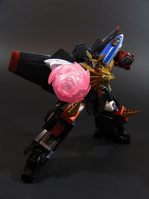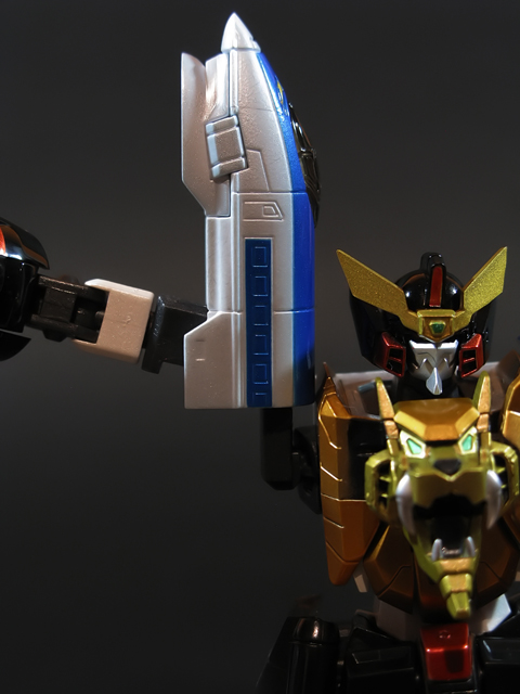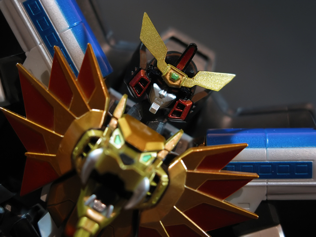 Gaigar (versione robot del leone Galeon), Stealth Gao (Aereo jet che diventa le ali del robot + avambracci), DrillGao, macchina scavatrice con due trivelle anteriori che diventa la parte inferiore delle gambe del Gaogaigar (un pò come il Gumper diventa le gambe del Daltanious), treno LinerGao, che si insersice nelle spalle di gaigar, oggetto inutile e puramente di "pubblicità" per i famosi treni giapponesi (forse la cosa più fastidiosa di tutta la trasformazione a mio avviso).Bene il risultato della Fusione di questi moduli (chiamata Final Fution nell'anime) è il Gaogaigar che questo modello rappresenta.