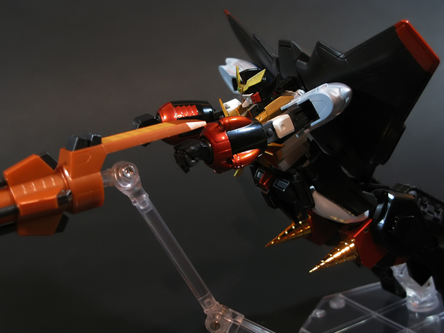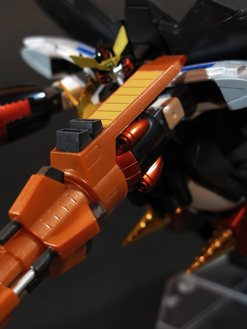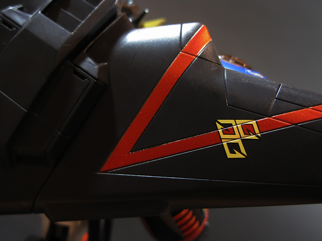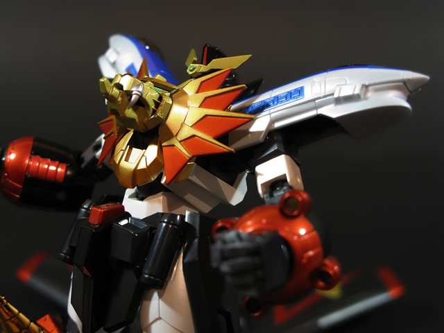 Verniciatura buona e ben stesa su tutto il modello e sugli accessori, nella mia copia non ho riscontrato sbavature o difetti di nessun genere, molto bello il logo GGG sulle ali proprio come nell'anime.