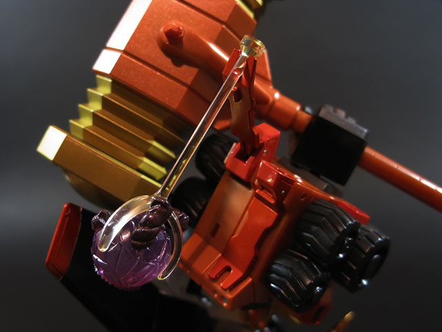 Nell'anime ci sono molti personaggi che sono indispendabili per la buona riuscita delle missioni alle quali prendono parte i membri della squadra GGG, uno di questi è GoldyMarg, un robot dall'intelligenza artificiale ispirata al Consulente Tattico della squadra che oltre a trasformarsi in veicolo tipo camion si trasforma, la parte inferiore del robot nell'avambraccio che si inserirà sul Gaogaigar e la parte superiore del robot nel potentissimo "Goldion Hammer", martellone gigante che devasta i nemici e che permette di estrarre il nucleo zoacrystal, del quale Mamoru si prenderà cura purificandolo.Ovviamente non essendo un trasformabile la scatola conterrà il martellone diviso in due parti, una la parte che "batte" l'altra il manico da inserire + un piccolo cerchio per posizionarlo saldamente a terra visto il peso. La scatola contiene anche i "perni" che simulano l'estrazione dello "zoacrystal" e l'avambraccio con 3 mani singole, 1 per l'impugnatura del goldion Hammer, 1 aperta ed 1 chiusa. Nella scatola sono contenute anche 2 mani di grandezza "normale" per l'altro braccio 1 per impugnare i suddetti perni l'altra aperta.Anche questi accessori son molto ben rifiniti e non presentano segni di distacco dai telai a parte il manico del martellone.Per dover di cronaca informo che ci sono altri due set di accessori uno con lo "stealth Gao II" (seconda Versione) e l'altro con i pliers, intelligenza artificiale sempre vista nella serie di 49 episodi, venduti separatamente ed usciti proprio in tempi diversi rispetto al modello ed al primo set accessori. Secondo me sono un di più ma dipende dalla propria esigenza/voglia di completezza che si ha verso il soggetto.