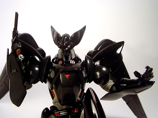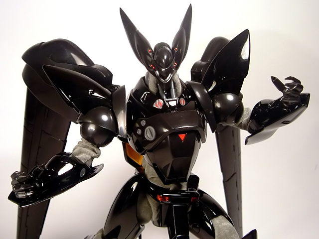 che consentono alle ali di essere pieghate in avanti, indietro, all'interno ed all'esterno;le ali hanno, a loro volta, degli snodi che permettono una -modesta- estensione (posizione Flight, posizione Land).Per tener fede al suo nome, oltre all'aspetto, il Griffon è dotato di mani artigliate; mani e pugni presentano il classico snodo per l'attacco nel polso del robot, pertanto bisogna prestare attenzione quando si effettua la sostituzione o il cambio di posizione, malgrado il materiale usato sia buono (giusto compromesso tra rigidità e morbidezza).La spettacolarità del modello è il Cockpit apribile; sul Griffon bisogna alzare la sommità del busto, abbassare la parte frontale del torso, alzare e spostare indietro il gruppo collo/testa:effettuata l'apertura, all'interno del Griffon scopriamo il pilota e parte della cabina di pilotaggio, visibile sia dall'alto che dal davanti ma, attenzione, il pilota non può essere estratto; per chiudere basta effettuare la procedura inversa.