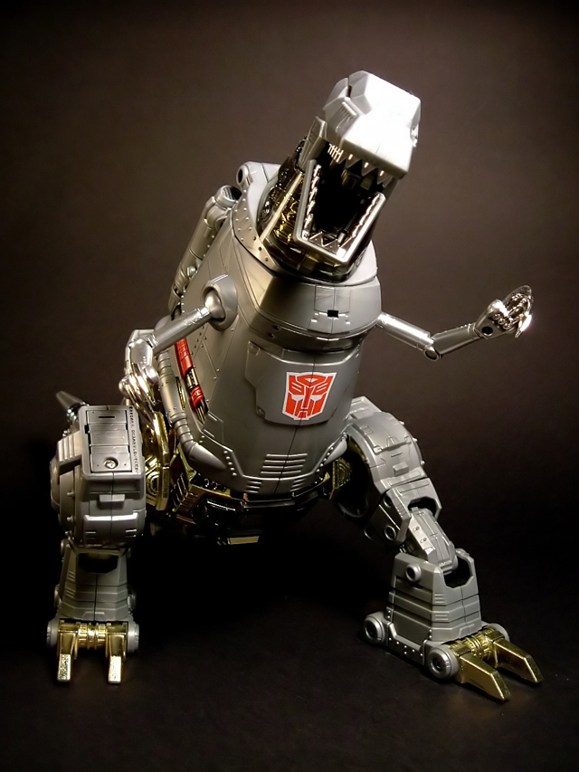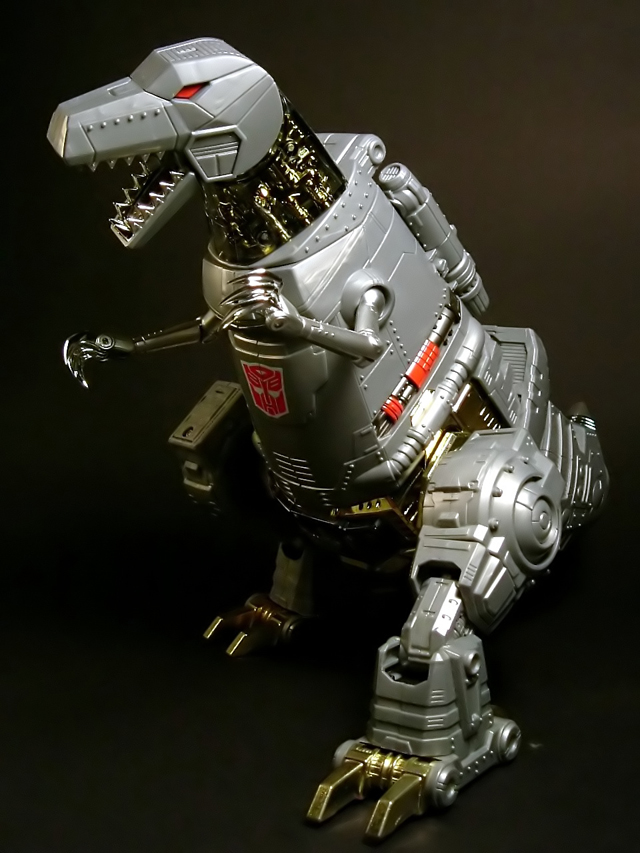Un modello imprescindibile per tutti gli amanti dei Transformers, ma comunque bello e consigliabile a chiunque, sempre che non ci si stia a fare paranoie sul contenuto in metallo dal momento che, agli amanti della sacra zama, questo è un toy che ha ben poco da offrire. Anche se il compito da svolgere, complice la già ottima versione vintage, per Takara non era certo difficile, possiamo comunque affermare che il lavoro è stato portato a termine egregiamente e con un risultato finale che lascia ampiamente soddisfatti. Se esteticamente vi attira indipendentemente dal fatto di essere o meno dei transformaniaci compratelo, acquisterete un gioiellino di tecnica che vi farà divertire non poco nel convertirlo nelle due configurazioni. Quanto al prezzo, se riuscite a portarvelo a casa entro i 100-120 euro non fate la stupidaggine di lasciarlo dov'è, adottate questo bel tirannosauro! Tanti cari saluti e a presto risentirci da Stefano-Mazingetter.