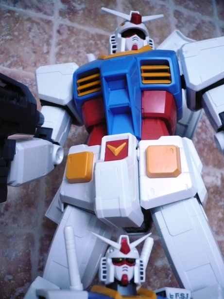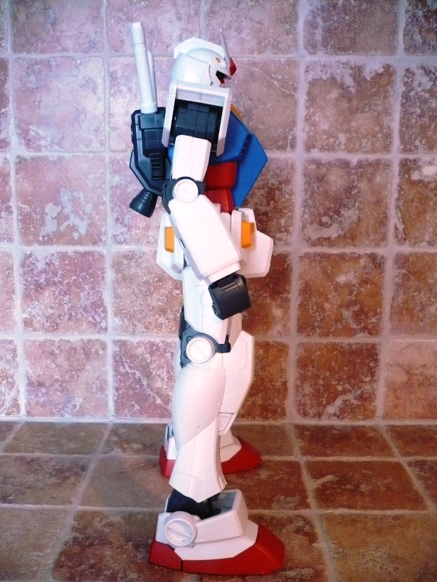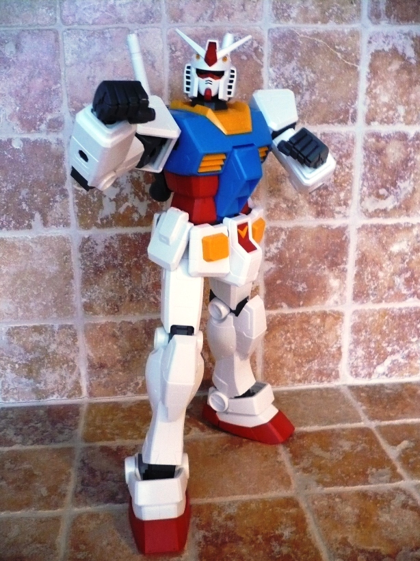 Bandai, Regina indiscussa nel panorama modellistico robotico, lancia questa nuova linea denominata MEGA SIZE MODEL, che comprenderà (se la cosiddetta avrà successo e proseguirà il suo corso) model-kit in scala 1/48.Questa linea si frappone, come fascia di prezzo, tra la Master Grade e la Perfect Grade. Infatti, pur essendo più grande di un normale PG, il prezzo è certamente minore avvicinandosi in maniera sensibile a quelli della scala più ridotta (1/100). Questo si spiega in larga parte con una minore cura del dettaglio, un assemblaggio veloce e pratico, minori accessori e soluzioni tecniche semplicistiche. Ciò non significa che il prodotto sia scarso. Tutt’altro.Come modello esordiente non poteva che essere stato scelto lui, che da tanti anni contende la leadersheep di “supereroe” preferito dai giapponesi ai vari Mazinga Z, Ultraman, Tetsujin 28 e Godzilla: il GUNDAM RX-78 2.Prima di cominciare a parlare del modello diamo un’occhiata alla scatola. Ovviamente grande (lunga 59 cm, larga 32 e alta 12) e sempre molto curata nella grafica esterna, così come Bandai c’ha sempre abituato. L’interno della confezione non si discosta per nulla da quello di qualsiasi altro kit presente nel mercato. L’unica differenza forse sta nella divisione, grazie ad un cartoncino piegato, in 3 scomparti, ma non mi ritengo certo un “kittologo”, perciò può darsi che tale soluzione sia stata già adottata precedentemente, magari con i PG. La differenza si nota eccome, invece, guardando i blister. Se nei vari MG i pezzetti e i pezzettini sono una moltitudine, qui non è così. Soluzioni semplicistiche, come ho scritto sopra. Non fatico a credere che molti amanti del gunpla possano storcere un po’ la bocca davanti a ciò. Tanto per fare un esempio, per assemblare tutti gli snodi delle ginocchia si impiegano sì e no 2/3 minuti, mentre per quanto riguarda un MG, per esempio, ne occorrono 10 per un solo snodo. Ciò è permesso in pratica dall’unione di 2 blister fra loro senza dover prima staccare gli sprue. Per essere più chiaro: un blister “maschio” (dove vanno inserite tutte le parti in PVC che formano gli snodi) e un blister “femmina” si uniscono semplicemente fra loro. Dopo di che si procede allo stacco dei vari sprue. Qui ho riscontrato una curiosità, che vorrei spiegare velocemente. Nel pratico libretto d’istruzioni, alla “voce” numero 1 sei invitato a staccare dal primo blister una specie di “beccuccio” (non so descriverlo altrimenti, comunque lo vedete nelle foto), che da un lato ha la classica forma di una spatola (la cui utilità spiegherò dopo) e dall’altro un becco che serve per staccare gli sprue. Non avrei scommesso 2 centesimi sulla funzionalità di tale marchingegno, ma mi son subito ricreduto ed ho riposto le mie piccole tronchesi. Si infila il beccuccio nello sprue, si fa leva e il pezzo si stacca senza esitazioni, lasciando pochi segni, che poi vengono tolti con un cutter.