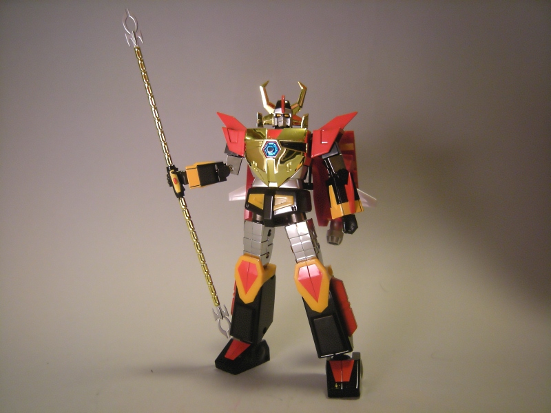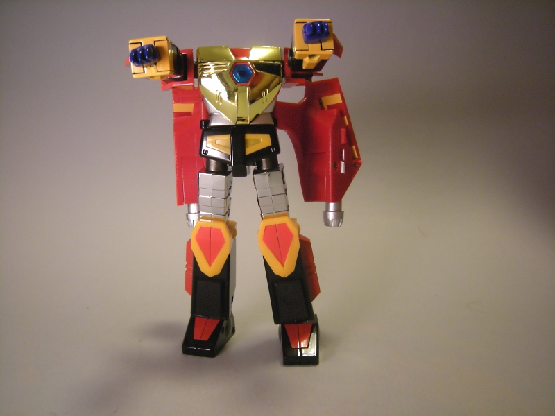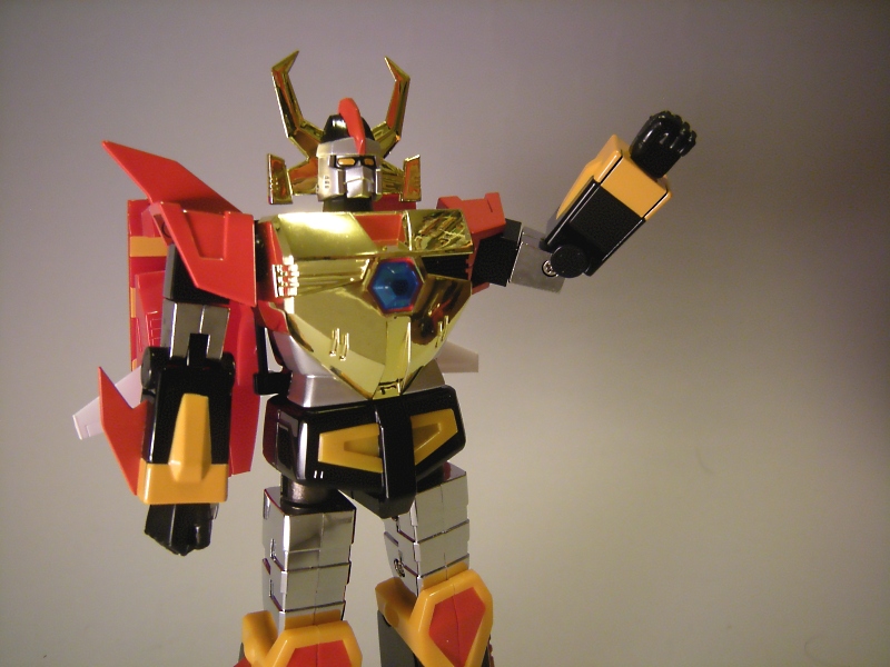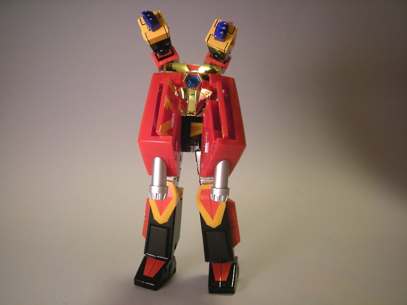 Gyakuten-Oh é sicuramente - sia come fattura che come studio ingegneristico - uno dei migliori modelli di CM's. Il robot é molto pesante e metalloso, nonché dotato di snodi e posabilità discreta. Va detto che probabilmente questa posabilità é semplicemente il risultato della presenza degli snodi necessari alla trasformazione, e ingegneriosticamente perfettibili. Per fare un esempio, sarebbe stato molto più efficace per l'esposizione se lo snodo a sfera dei piedi fosse stato realizzato in modo da poter essere esteso, aumentando l'inclinazione degli stessi. Questo a voler essere pignoli. Ad ogni modo si tratta di un oggetto davvero paragonabile ai primi Soul of Chogokin di Bandai (d'altronde i vari GX01 e GX02 originali non facevano molto movimenti in più). Se avete l'occasione di comprarlo, non tiratevi indietro. Ne rimarrete di sicuro soddisfatti. Ovviamente, come fatto notare, ci sono diversi dettagli che potevano essere realizzati meglio, ma nel complesso si tratta di un modello che convince davvero.