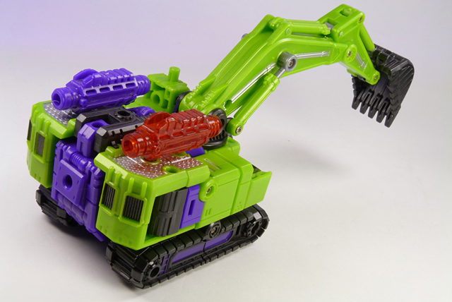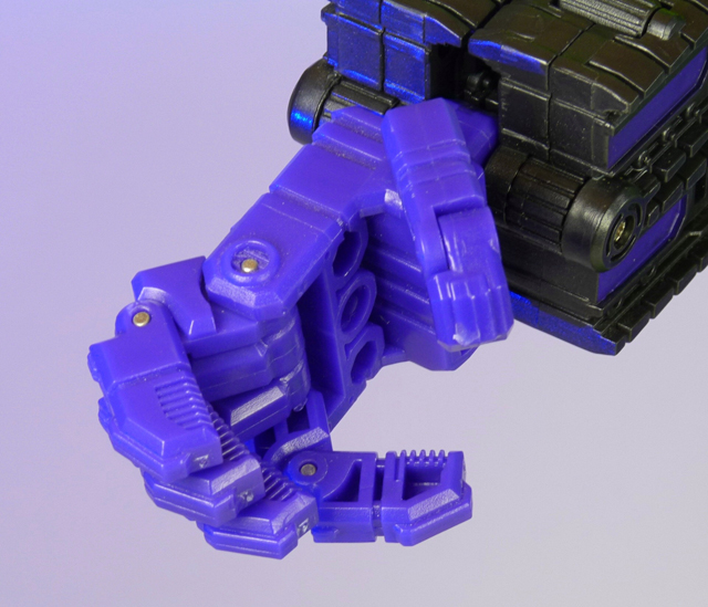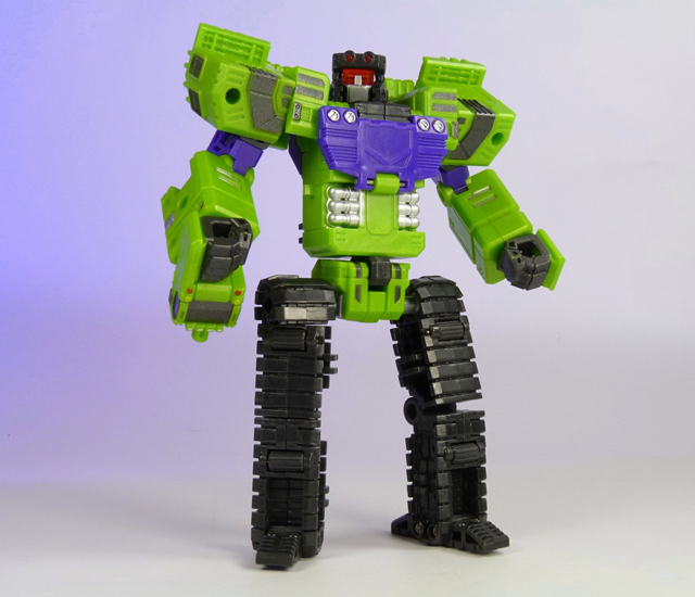 Ben studiate e riuscite anche le proporzioni, con quei cingoli trasformati in braccia leggermente lunghe che conferiscono un leggero effetto gorillesco, perfettamente adeguato alla brutale ignoranza tipica del combiner.