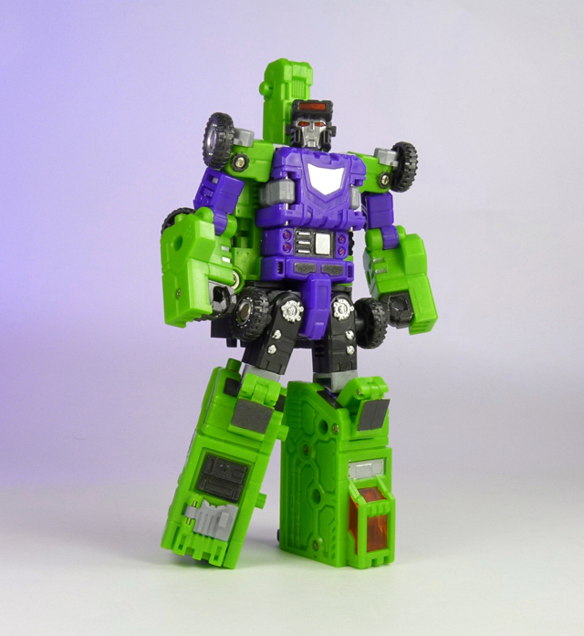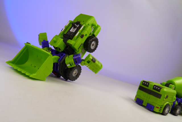 Ottima l’idea di poter posizionare l’enorme gru sulla spalla di Dr Crank e, soprattutto, di poter trasformare l’ingombrantissimo bicchiere di Madblander (la parte girevole della betoniera) in una vera armeria ambulante… a spicchi! Tutte le bocche di fuoco sono poi agganciabili al robot.