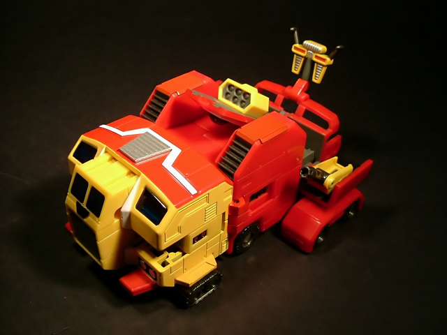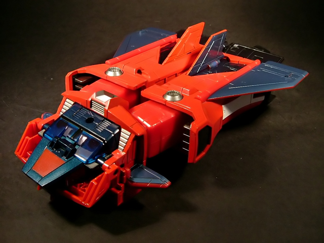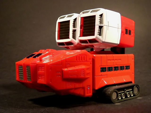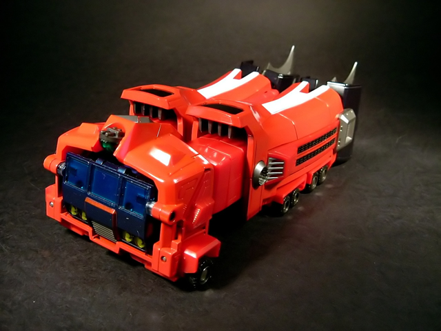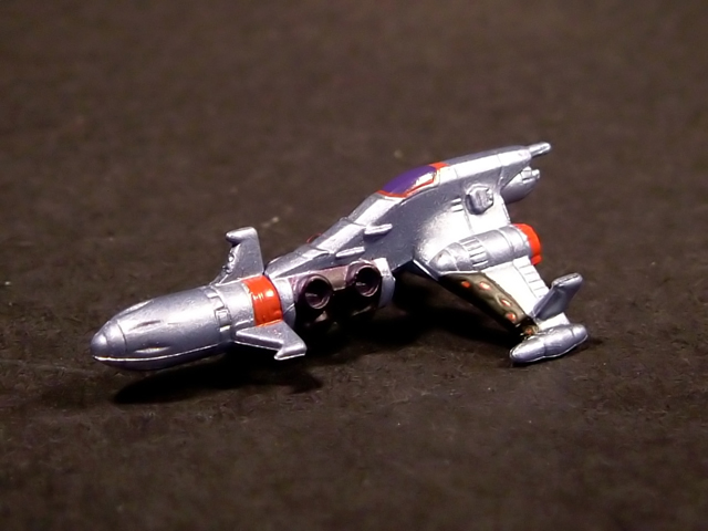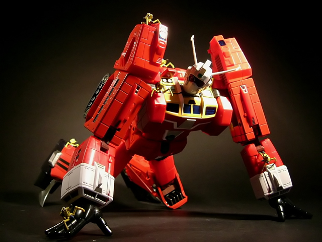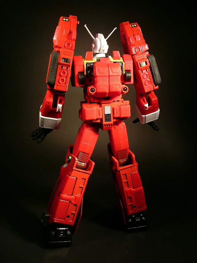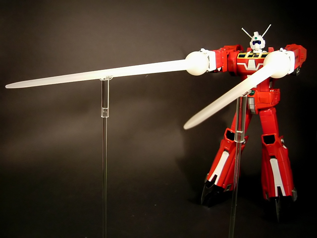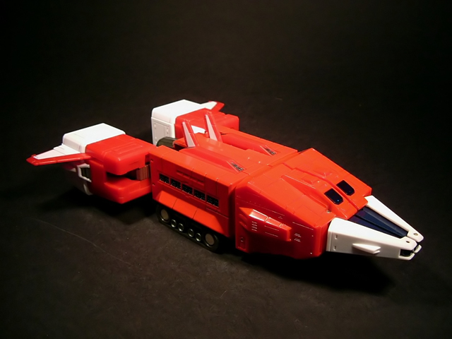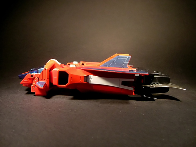 - Mecha C (Ideon Buster il modulo aereo, Sol Conver quello terrestre): costituisce bacino e arti inferiori del gokin ed è in assoluto l'elemento più pesante dei tre, addirittura 852 grammi. E' stupefacente la sensazione di pesantezza che trasmette non appena lo si soppesa. Bellissimo come aereo (dei 3 mecha e delle conformazioni possibili è in assoluto il mio preferito), è facilmente trasformabile nel mezzo terrestre. Ho trovato stupendi gli alettoni dorsali e laterali che, ripiegati gli uni sugli altri, si vanno ad alloggiare nell'interno della gamba, lo stesso dicasi per i reattori estraibili a rotazione sotto la punta dei piedi e per le ruote posteriori del Sol Conver estraibili dallo spigolo postero-laterale delle gambe dove, una volta ripiegate, non danno alcun segno della loro presenza. Carini anche i cannoni estraibili attraverso la rotazione del logo al centro del bacino.