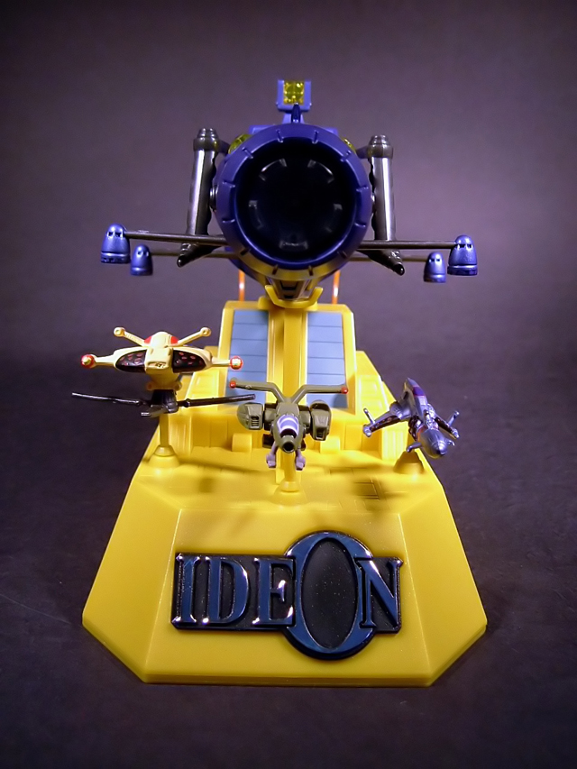 - Grande blister di plastica trasparente contenente: 4 paia di mani (un paio con falangi snodate per l'impugnatura dell'Ideon Gun, un paio di pugni chiusi, un paio a dita aperte ed estese ed un paio a dita semiflesse), 10 Jyong (i piccoli mecha aracniformi), 2 Gadakka (i camminatori meccanici a due gambe) con le relative basette, 2 cavetti per il collegamento dell'Ideon Gun all'addome del robot, 2 placchette intercambiabili applicabili sull'addome (una per l'agganciamento dei cavi dell'Ideon Gun e una per la simulazione del mini black hole cannon), un carro armato, 3 piccole astronavi di cui ignoro il nome (di colore giallo, viola e verde militare rispettivamente, le prime due delle quali appartenenenti ai mecha avversari), una piccola appendice da applicare alla punta dell'astronave viola, 3 aste piccole e una più lunga di colore giallo da fissare sulla basetta per l'esposizione delle astronavi e dell'Ideon Gun, un perno di plastica trasparente da applicare anch'esso sulla basetta per l'esposizione dell'Ideon Gun, le due grandi Ideon Swords e due tappi copripugni per la loro applicazione nonchè due basette rotonde (riproducenti il logo di Ideon) e due aste con tre sostegni di plastica trasparente e lunghezza variabile applicabili su di esse per dare loro sostegno.