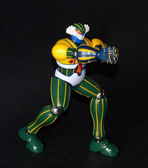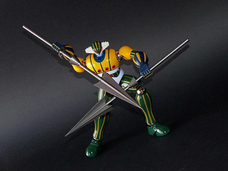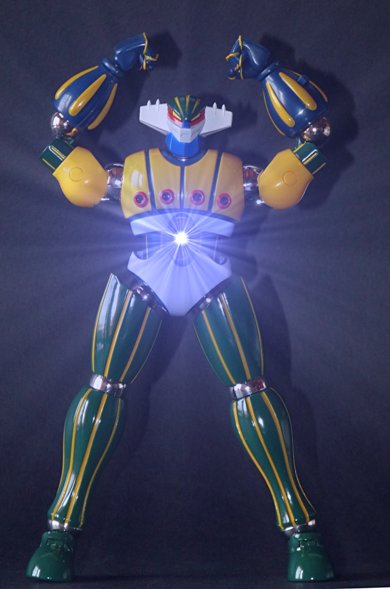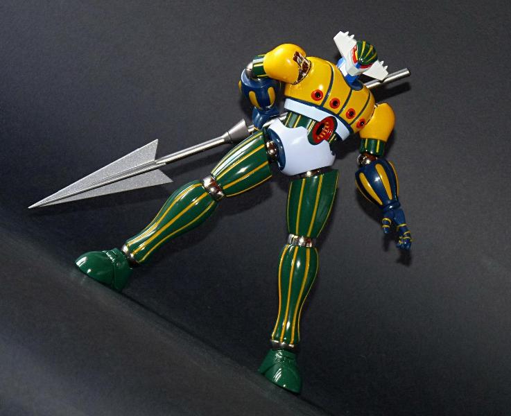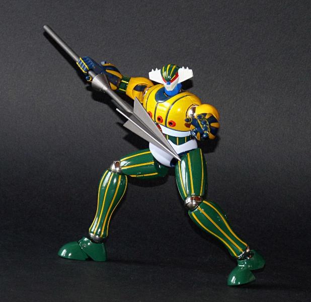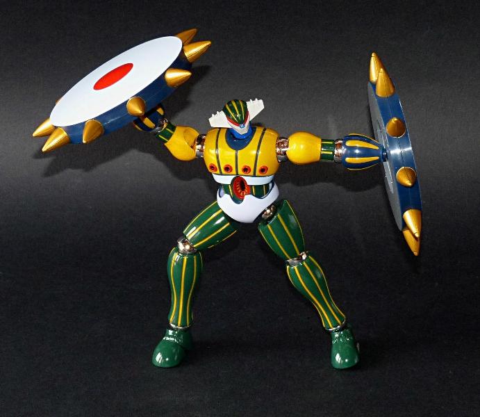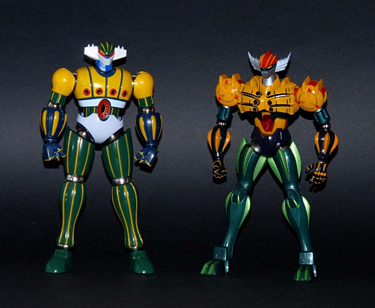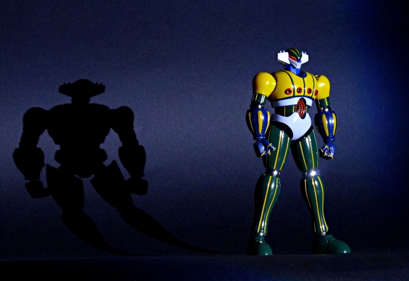 Quello che invece questi personaggi non condividono in egual misura è una degna e completa rappresentazione nel mondo del modellismo robotico. Infatti, mentre il mercato è invaso da quantità ormai ubriacanti di Mazinger per tutti i palati, per il nostro amatissimo Jeeg non esisteva praticamente un vero modello die cast moderno: riflesso di un successo commerciale globale sicuramente non esplosivo come quello di alcuni suoi fratelli nagaiani, costui si deve accontentare di vecchi, ma gloriosi giocattoli come il sempreverde Takara, che tra l’altro ha una ristampa tutt’ora in vendita, dei mini metal Marmit, di altre figure e di statue, oltreché di una schiera inossidabile di creazioni custom autoprodotte dagli appassionati più accaniti (e bravi). Mancava però un modello di metallo paragonabile ai SOC di Bandai, moderno, posabile, di qualità.