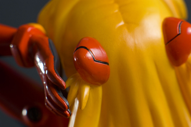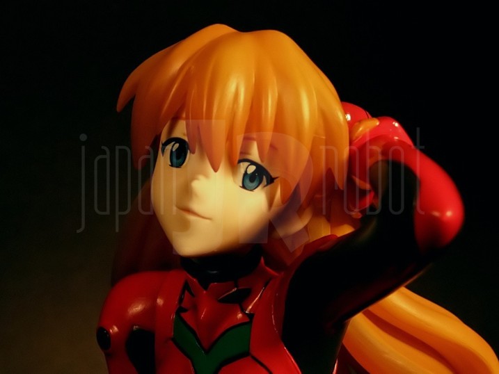 Come con Rei il plug suit è verniciato in modo sincero ed i dettagli seguiti benino senza strafare, Misato era un altro pianeta.I capelli sono traslucidi e sfumati con colori semiopachi all' attaccatura.Ecco, qui i capelli essendo lunghi rendono molto meglio che in Rei, sono il pezzo forte del pvc.Per Caratterizzare il viso con un espressione arrogante (tipica del personaggio) si è scelta una colorazione ancora una volta anemica; (la mia preferita, al bando i centri di abbronzatura) ma troppo esagerata tanto da risultare più pallida di Rei e la cosa non va bene.