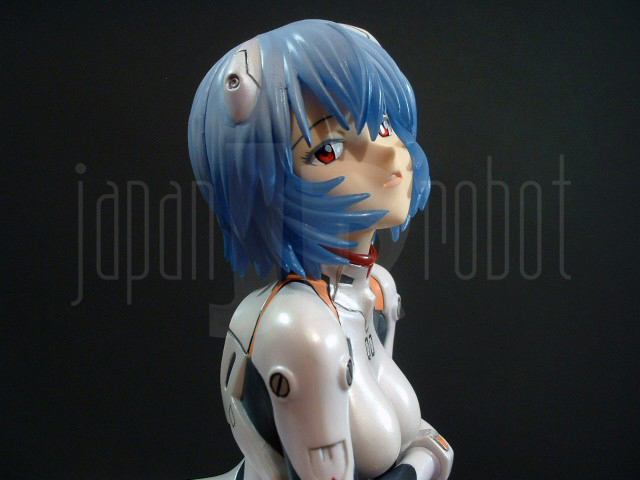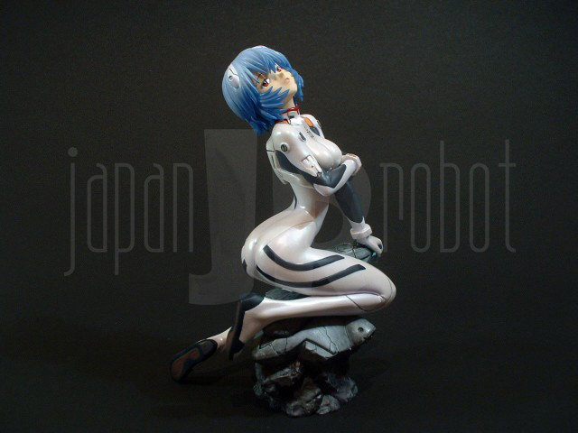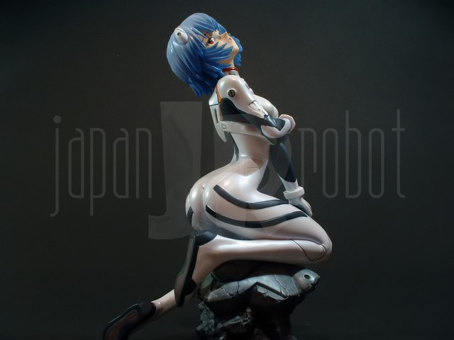 Rei, personaggio Otaku simbolo di Evangelion alla quale sono state dedicate negli ultimi 15 anni credo il più alto numero di statue e statuette nella storia, era un personaggio che si prestava ad essere un guscio vuoto per il suo padrone, poiché essendo priva di personalità, si piegava al suo volere obbediente e remissiva.Vera innovazione che ne fece uno stancil su cui sono stati clonati un infinità di personaggi sia dal punto di vista caratteriale che puramente visivo.Ma questa Rei del nuovo ciclo cinematografico non è la solita, infatti acquista un carattere e si definisce un suo spazio.Shirahige Tsukuru ha svolto un eccellente lavoro scolpendo questa Rei, ma a mio avviso, imitando lo stile di Yoshiyuki Sadamoto (di cui mostro anche 2 settai)senza però esagerare con le sproporzioni ma centrando in pieno il nuovo essere di Rei.
