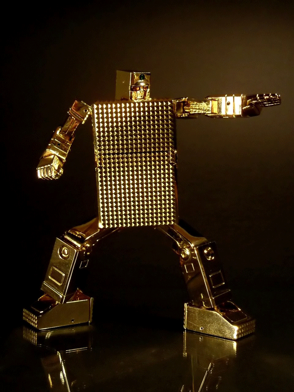 Nel 2006 Bandai annuncia il trentaduesimo modello della serie Soul Of Chogokin lasciando esterrefatti gran parte degli appassionati taliani. Il soggetto che di lì a poco sarebbe stato riprodotto in versione gokin è il Gold Lightan, un piccolo robot convertibile in accendino e viceversa, tanto simpatico quanto esteticamente discutibile per effetto delle sue fattezze decisamente squadrate e ben poco aggraziate. La serie anime Gold Lightan the gold warrior,risale al 1981, non ha mai raggiunto il nostro paese e vede tra i protagonisti, oltre al suddetto,anche altri piccoli robot-accendino che non a caso Bandai ha riprodotto inserendoli tra i The Chogokin, altra serie di gokin alternativa ai più famosi Soul Of Chogokin che arricchisce il catalogo della casa nipponica. Ebbene, sembra incredibile a dirsi ma il Gold Lightan nasconde molto di più di quanto il goffo aspetto non dica, la posabilità infatti è assolutamente sorprendente e soprattutto inaspettata per un mecha con un design così decisamente poco dinamico.Anche dal punto di vista tecnico, come andremo a vedere, il modello è un piccolo gioiello, e rappresenta il naturale precursore dei robot che nel più recente God Mars ne vanno a comporre gambe e braccia. Insomma, sembra incredibile ma il God Mars deve molte delle sue fortune proprio a questo Gold Lightan, dal cui progetto Bandai ha attinto a piene mani nella produzione del gx-40. Con queste promettenti premesse andiamo a incominciare la nostra recensione.