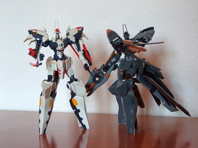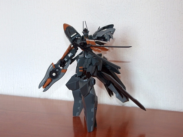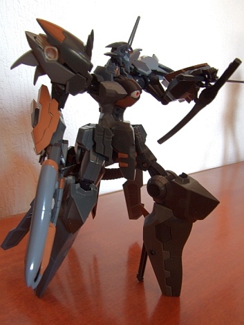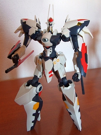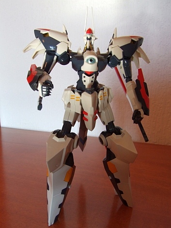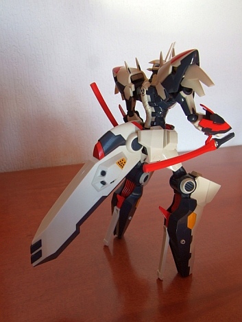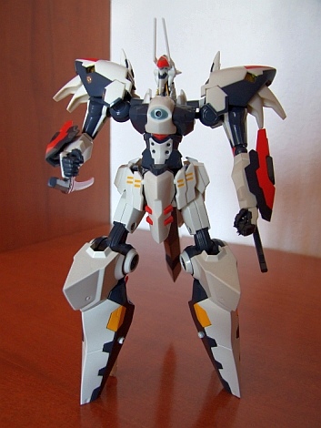 I Machina hanno un Design molto particolare che richiama in parte le unità "Eva", i Mobile Suit e Aquarion e la prima cosa che si nota nel Linebarrels è la mancanza dei piedi e delle caviglie; la seconda cosa che si nota sono i foderi delle spade fissati con un perno sulla parte p osteriore di ogni braccio e, per finire, la presenza di una coda/booster/stabilizzatore!I colori del Linebarrels sono : il bianco (che ha predominanza) il grigio scuro ed il rosso ai quali si aggiungono il nero,l'azurrino della cabina di pilotaggio ed il giallo presente sulle spalle e in qualche particolare sulle anche, gambe e coda.estratto il Linebarrels dal suo alloggiameto, ci si rende conto che abbiamo tra le mani un modello molto posabile ma anche molto delicato malgrado sia un un mix tra metallo e plastica : le corna sulla testa ed i foderi sono molto inclini ad avere vita breve data al loro posizione, i rostri sulle spalle invece risultano esere letali per le dita; non ultimo, lo snodo del gomito non trasmette alcuna sicurezza, conviene sembre usare le due mani per piegare e ruotare l'arto.Per quanto riguarda la verniciatura e le cura dei particolari, direi che CMS ha lavorato bene, infatti troviamo due tappini per chiudere i buchi nell'interno coscia, le spade non si inseriscono nei foderi, ma si possono togliere i manici che fanno da tappino ai foderi fissati alle braccia, cosi da riprodurre fedelmente l'impugnatura della spada avendo il fodero vuoto:c'è da notare però che spesso nell'anime la spada sinistra finisce nella mano destra e viceversa perciò...se le tenete estratte ed impugnate entrambe nessun problema altrimenti il fodero della spada non estratta interferisce con quello della spada impugnata! beh, se estraete la sinistra, fatela impugnare dalla mano sinistra e viceversa ;) i pugni semiaperti presentano il pollice ruotabile in maniera da consentire l'impugnatura delle spade o del fucile;sul retro delle gambe, a livello dei polpacci, è possibile far uscire due puntoni (sembrano due tacchi a spillo, ndr)che appaiono anche nell'anime per dare stabilità a Linbarrels quando fermo in piedi;la coda si collega al retro del modello, andando ad agganciarsi nell'apposita fessura posta al livello dell'osso sacro;la coda ha una funzione di bilanciamento oltre che di terza gamba e di booster visto che Linebarrels molto spesso combatte sollevato da terra (fluttuando o volando); anche se lo riproduce fedelmente, il fucile che si apre (ricorda un pò quello usato dal Turn.A Gundam) è propio brutto, spesso si tende a montarlo al contrario a causa della sua forma.Come già accennato, possiamo decidere se esporre Linebarrels in modalità normale oppure in quella "Overdrive" :per la seconda dovremo montare sulle braccia le protezioni aperte e la seconda coda in dotazione, aperta a ventaglio,ed alzare la parte superiore delle spalle.Se il linebarrels risulta un giusto mix tra metallo e plastica, entrambe le code sono interamente in materiale plastico,però c'è uniformità di colore tra questi pezzi grossi ed il resto del modello, brava CMS.Da notare che i polsi sono parte integrante dei pugni e delle mani - il perno si inserisce nel braccio e non viceversa -,sono di gomma rigida e si inseriscono in materiale rigido non gommmoso, evitando cosi di trovare il pugno/mano incollatied impossibilitati a ruotare o ad essere sostituiti (come nelle donne robot di Bandai, per fare un esempio).La basetta con il braccio snodato è quanto mai benefica per questo modello, visto che Linebarrels è un robot destinato al combattimento ravvicinato e l'ottima posabilità permette di ricreare molteplici pose, con e senza armi!Esporre Linebarrels come un soldatino di guardia è veramente desolante! sbizzarritevi a trovare qualla che più vi piace;il braccio snodato si inserisce nell'apposita fessura posta sotto quella dove si inserisce la coda;da notare che anche la coda ha uno snodo che le consente posabilità (ricordatevi che serve come bilancere e terza gamba nel caso non usiate la basetta d'esposizione).Se la verniciatura e la cura dei particolari è molto buona (guardate il logo riprodotto sulla guardia delle spade e sulla schiena di Linebarrel), un nota negativa riguarda gli snodi usati per tutto il modello :nessuno di questi è a scatto, pertanto non è consigliabile giocare molto con le pose e ricordarsi di far attenzione quando si piega il gomito (è sottile, molto delicato) mentre un'ottima escursione hanno testa, collo e gambe.Come detto in precedenza, la mobilità del modello è ottima, abbiamo uno snodo al bacino ed uno al torace, le braccia possono essere incrociate liberamente sia sul petto che sulla schiena...insomma, sarà un "Brave Gokin" ma discende totalmente dalle Action Figure (probabilmente è la moda dei modelli del 2009).Per quanto rigurada il Mode-b (spesso indicato come Black), oltre alla presenza delle figurina, la differenza è il colore:il bianco viene sostituito da un colore grigio molto scuro (NON è perciò il nero) per ripodurre la colorazione assunta da Linebarrels quando in esso vi sono entrambi i suoi Factor e la guida è nella mani di "Emi Kizaki", almeno inizialmente; Linebarrels mode-b ha prestazioni speriori alla versione normale, ma questo ha un costo, la maggior potenza esaurisce le risorse energetiche e vitali del sua Factor!il Mode-c (Lo Sterminatore di Machina) presenta una colorazione rossa tendente al rosa, riproponendo la colorazione che assume Linebarrel specialmente nell'ultimo episodio, durante lo scontro finale con le forze extradiensionali che tentano di passare sul nostro piano.Oltre alla differente figurina di "Emi Kizaki", troviamo una lama da montare sul fucile per ripordurre l'Executor che chiuderà la partita con Big Boss decretando la sconfitta degli extraterrestri che ci vogliono assimilare;sia il Mode-b che il Mode-c sono a tiratura inferiore rispetto alla normal version: la novità CMS è che questa volta non ha prodotto versioni con colorazioni per questo o que