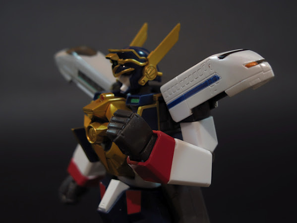 Gaine: un robot dotato di intelligenza artificiale in grado di trasformarsi in treno (300 Series Shinkansen) che forma l’altro braccio