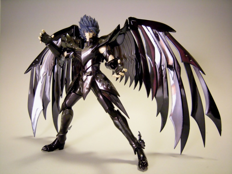 La realizzazione di Bandai per il myth in questione stupisce per la resa estetica e per alcune migliorie tecniche apportate. Vediamole. Innanzitutto è da segnalare lo snodo delle falde del gonnellino, che permettono alle stesse di allontanarsi, avvicinarsi, ruotare, salire, scendere... in sostanza è possibile muovere le gambe in qualsiasi direzione senza avere alcun impedimento. Inoltre le ali sono dotate di lunghe piume mobili autonomamente nella loro parte esterna. La colorazione nera opaca e gli inserti argento fanno il resto, donando un grande impatto scenico grazie anche al design della surplice. Tuttavia ci sono anche dei limiti tecnici. I coprispalle una volta agganciati al busto sono inamovibili e questo limita di molto il movimento delle braccia. Le ali inoltre sono esageratamente grandi. L'idea con cui sono sviluppate è buona, ma paradossalmente la loro posabilità è limitata dato che non possono avvicinarsi al corpo del personaggio oltre a un certo limite. Infine diverse piccole parti (come le alette sui gambali o la parte frontale del busto) tendono a staccarsi durante la manipolazione del personaggio.