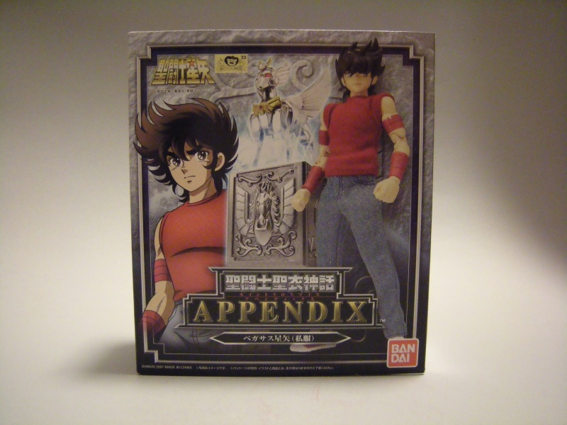 A sorpresa Bandai arricchisce la linea Appendix inserendo dei personaggi con i loro abiti civili, in luogo delle classiche armature. Ad aprire le danze è ovviamente il solito Pegasus Seiya. Null'altro da dire, se non che questi sono i vestiti che Seiya indossa quando non combatte.