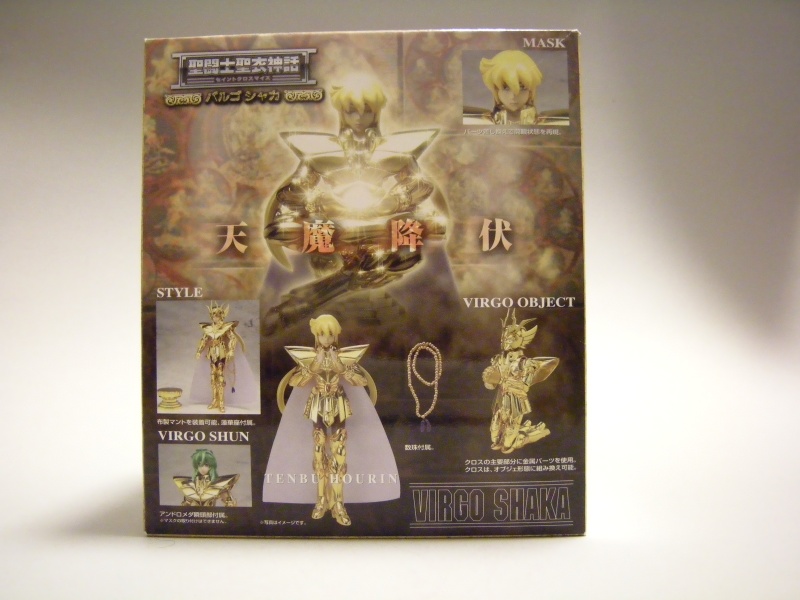 Il myth in questione è stato una delle prime uscite della linea e a un giudizio odierno presenta molti difetti, soprattutto nel volto e nei capelli. Tralasciando questo aspetto (verrà poi corretto con un'appendix), la cloth è ben scolpita ma riserva tutti quei limiti derivati da un corpo g1 e dalle soluzioni tecniche vecchie, come i faldoni laterali del gonnellino agganciati senza poter muoversi solidalmente con le gambe. Ovviamente certe soluzioni dei corpi g3 come lo snodo al torace sarebbero stati inutili perchè i movimenti sarebbero poi stati resi impossibile dalla corazza del busto che imbraga totalmente il personaggio. Tuttavia la maggior posabilità delle gambe avrebbe aiutato nella resa più naturale delle varie posture. Il soggetto è dotato delle due classiche espression facciali con occhi chiusi e occhi aperti. Inoltre è presente come extra una testa di Shun per rappresentarlo quando indossa la gold cloth di Virgo nei Campi Elisi. La conformazione ad object della cloth è molto semplice da realizzare, ma presenta alcuni vistosi difetti: i corpispalle vengono agganciati sulla schiena nello stesso aspetto che hanno quando sono indosso a Shaka invece di aprirsi come ali, le alette ai lati dell'elmo non scendono per simulare i capelli della figura della vergine e le mani unite in preghiera del medesimo soggetto sono in plastica morbida di colore visibilmente diverso da quello della cloth.
