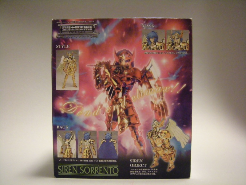 Difensore della colonna dell’oceano Atlantico del Sud, Siren Sorrento affronta in battaglia Andromeda Shun. L’object dell’armatura rappresenta la Sirena, ma nell’accezione più antica del termine, quella cioè di mostro mezzo donna e mezzo uccello (attualmente indicato come arpia) che viveva al largo della penisola sorrentina. Come le sirene del mito omerico, Sorrento incanta il nemico attraverso una melodia e conducendolo alla morte tramite essa. Difatti è parte integrante dell’armatura un flauto, mezzo attraverso cui il Generale porta alla follia i suoi avversari.