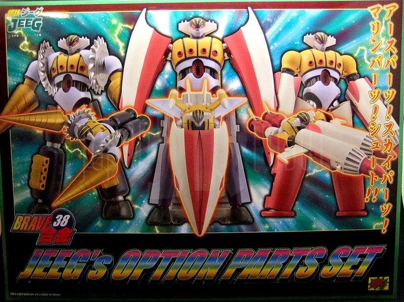 Dopo i Brave Gokin 36 e 37, Jeeg e Big Shooter, CM’S chiude il trittico dedicato all’anime Kotetsu Jigu con l’uscita numero 38, rappresentata dai moduli opzionali terrestri, marini ed aerei del Jeeg stesso. La stessa serie animata sarà ulteriormente omaggiata, a distanza di pochi mesi, dalla commercializzazione per la serie di action figures Gutto Kuru della stessa CM’S, di una bella riproduzione della regina Himika, sovrana del popolo Aniba e nemica per antonomasia del robot d’acciaio. Il Brave Gokin 38, Jeeg Optional Parts Set, è stato immesso sul mercato sul finire dell’agosto 2012, come da tradizione in più varianti, per la precisione 4: