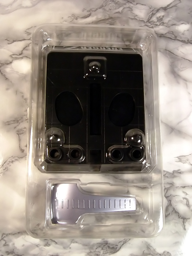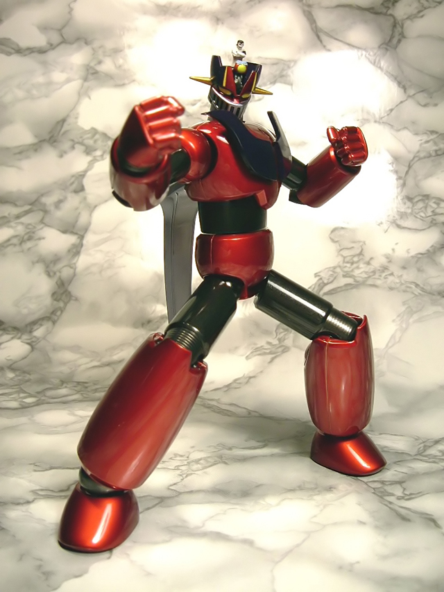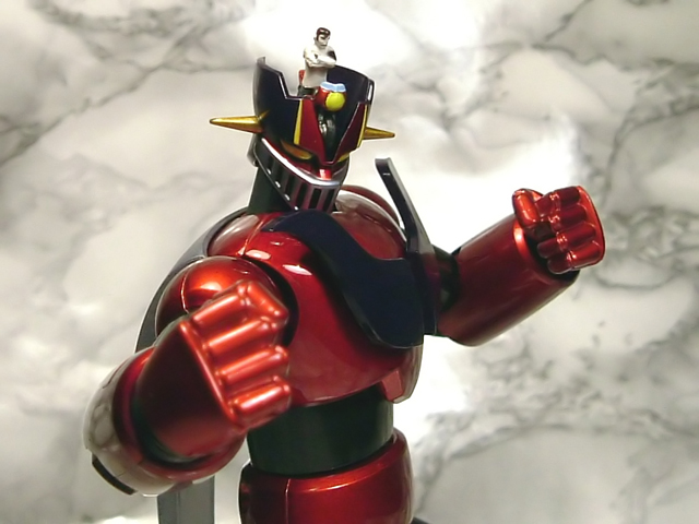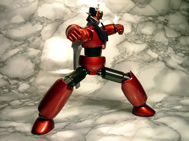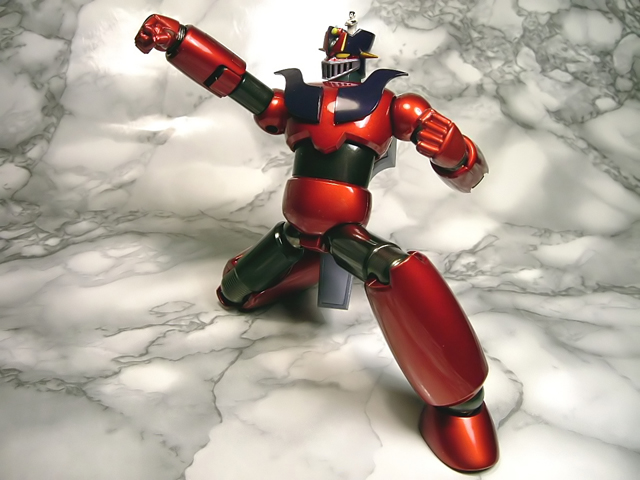 - due blister in plastica trasparente impilati l'uno sull'altro, il primo contenente la basetta espositiva e la rampa applicabile sulla schiena del robot, il secondo contenente due avambracci, due sistemi sparanti per la simulazione del rocket punch, due avambracci adattabili a questi ultimi, due paia di mani (un paio chiuse a pugno ed un paio a dita aperte e piegate), le due moto agganciabili alla testa del robot, una pilotata da Kenzo Kabuto e l'altra pilotata da Tetsuya.