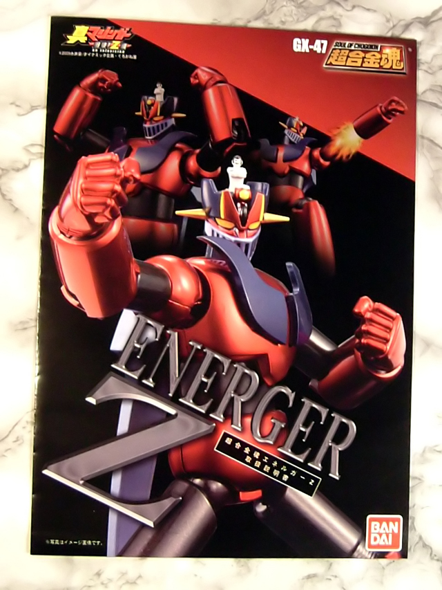 Dopo la parentesi del bellissimo gx-46 direttamente tratto da Super Robot Wars Bandai torna ad attingere a piene mani dai mecha della serie Shin Mazinger Shougeki! Z Hen con la produzione,dopo l'uscita targata 2008 di Energer e Iron Z, di un nuovo Energer, lo Shin Energer Z così come il robot compare facendo una fugace apparizione nel ventunesimo epidosio della serie per essere rapidamente liquidato dal Mazinga Z trasformatosi in Big Bang Punch. La caratteristica più peculiare del modello è certamente la colorazione, non analoga a quella dei precedenti gx-07E ed I o a quella dell'Energer così come appare nell'episodio 20, ma ben diversa e derivante dall'arroventamento del robot quando il Conte Brocken alla sua guida mostra la sua vera identità gettando la maschera di Kenzo Kabuto con cui si era camuffato. Ci troviamo di fronte ad un modello che sinceramente ho comprato soprattutto per il prezzo stracciato a cui mi è stato proposto e per la colorazione a dir poco originale che in un certo qual senso si discosta dall'abituale piattume mazinghiano, ma non possiamo nascondere come anche questa, come quella dei vari 07E ed I, rappresenti l'ennesima operazione Bandai di chiaro riciclaggio di modelli già usciti (in questo caso del recente gx-45). Andiamo quindi ad analizzare questo ennesimo clone bandaiano......