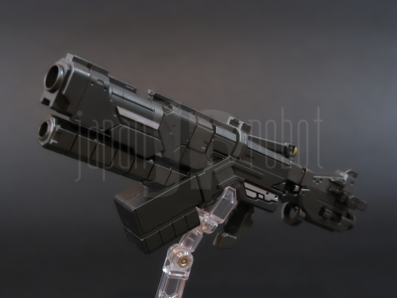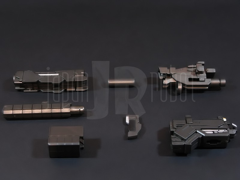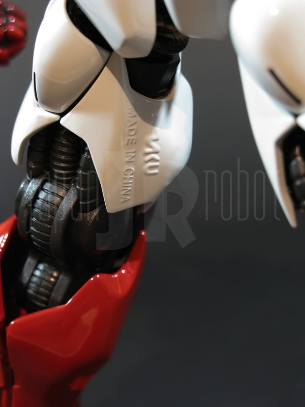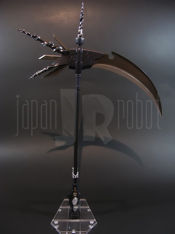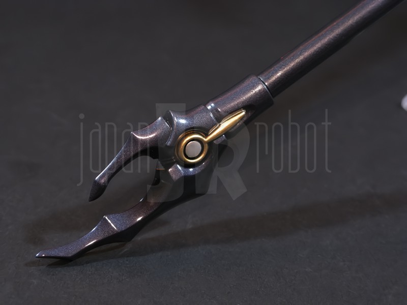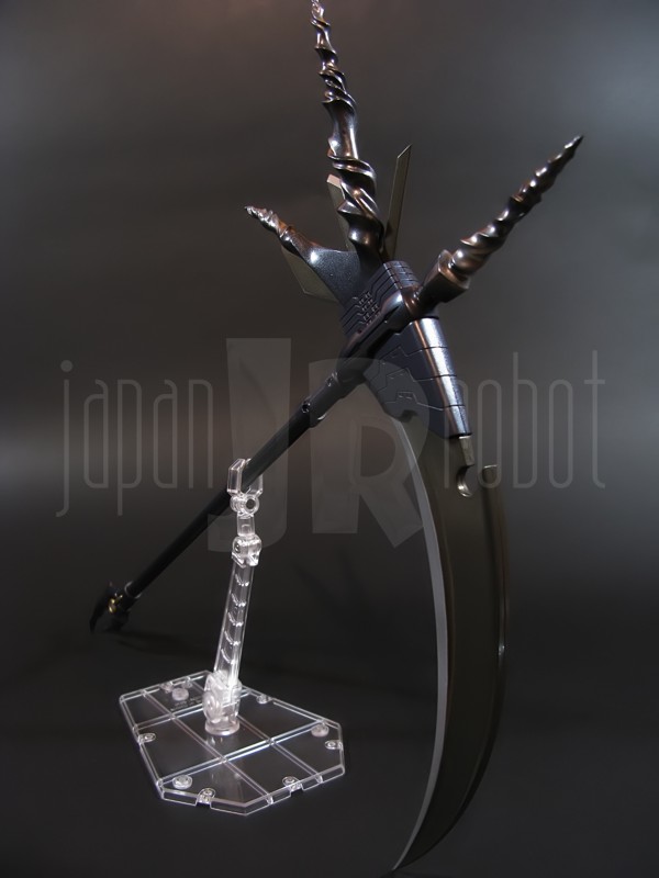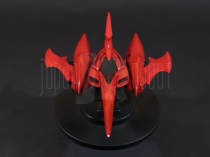 Come si estrae il modello e lo si soppesa se ne evince la abituale, estremamente lusinghiera e soddisfacente sensazione di pesantezza che caratterizza tutti i gokin di questa serie, già di per se indicativa di una composizione quasi integralmente in metallo. Fatta eccezione per testa, pugni, ginocchiere, dischi sulle braccia e giunture e ingranaggi a vista (vedi anche, spalle e gomiti), il nostro Shin Getter 1 è infatti totalmente in lega metallica, almeno per quanto riguarda le parti esposte. La politica adottata, anche per la strutturazione di questo modello così come per i precedenti Getter Fewture, è stata quella dello scheletro in plastica di sostegno ad un rivestimento esterno in zama, aspetto che non lascerebbe presagire niente di buono visti i problemi dei famigeratissimi predecessori, tanto criticati per falle più o meno clamorose (Getter 1 e Getter 2 in particolar modo) anche se in questo caso mi sento di essere più fiducioso visto l’uso di plastiche apparentemente più solide e di miglior qualità e l’impiego di viti (indicato dalla presenza di azzeccatissimi tappi ben visibili sulla schiena del robot) a solidificare la struttura del gokin. L’assemblaggio è estremamente semplice e rapido, è sufficiente applicare a pressione le lame sugli avambracci (ciascuna mobile in modo indipendente e regolata da uno snodo a sfera), la testa, il generatore getter, le due piastre pettorale e addominale, le ali e le due ginocchiere. Una volta assemblato il modello (completo di ali), ha un peso di 1060 grammi per un’altezza all’apice delle spalle di 26 cm scarsi che arriva ad un culmine di circa 43 cm alla punta delle ali se rivolte verso l’alto. La mobilità del modello è semplicemente eccezionale e garantita da un’infinità di punti di snodo che consentono anche le pose più estreme (vedi la possibilità di metterlo in ginocchio) a dispetto delle forme relativamente elaborate e della stazza decisamente imponente. L’avampiede è flessibile con movimento a scatto, le caviglie hanno discreta inclinazione e modesta rotazione lavorando in tal senso come articolazioni ad attrito e funzionando invece con sistema a scatto in estensione (peraltro buona). Le gambe ruotano leggermente lungo l’asse longitudinale (la sinistra del mio in realtà era bloccata ed ha necessitato di una piccola iniezione di lubrificante). Le ginocchia sono estremamente flessibili e regolate da snodi a scatto, il consiglio è quello di porre particolare attenzione ai rischi di sverniciatura nelle flessioni estreme, quando cioè la parte superiore della faccia posteriore della gamba rischia di andare in contatto con la parte bassa della faccia posteriore della coscia. L’articolazione dell’anca presenta ottime escursioni sia in abduzione che in flessione, agendo su ambo i piani con sistema a scatto. L’intero arto inferiore è peraltro abbondantemente intra ed extrarotabile all’altezza della coscia. Buoni i basculamenti laterali del torace, più limitati i movimenti di torsione, ad ogni modo occhio alle eventuali sverniciature della piastra pettorale nel caso di contatto col bacino, rischio da cui lo stesso foglio delle istruzioni mette in guardia. Le spalle sono ripiegabili in avanti ed estensibili posteriormente con sistema ad attrito mentre in rotazione (peraltro completa) ed in abduzione (pari a non più di 90 gradi) lo snodo si comporta come articolazione a scatto. Gli stessi inserti marroni sulle spalle sono mobili e ripiegabili medialmente a scatto. I gomiti, anch’essi a scatto, si flettono a circa 90 gradi, mentre gli avambracci sono liberamente ruotabili lungo il loro asse longitudinale. Addirittura i polsi (forse un po’ troppo esilini) sono a scatto e danno la possibilità di flessioni estreme alla mano. La testa è invece supportata da uno snodo a sfera che, oltre a consentire la rotazione completa a 360 gradi, permette ottimi movimenti di flessione ed estensione anche per effetto della mobilità della base di impianto. Nel complesso, oltre all’ottima posabilità, è confortante constatare la ricchezza di articolazioni a scatto, teoricamente in grado di garantire una maggiore tenuta in prospettiva futura, fondamentale per un gokin così pesante rispetto ai più semplici e col tempo logorabili snodi ad attrito. La qualità della verniciatura è nel complesso estremamente buona, comunque più alta, almeno in questo esemplare, rispetto alla media da me rilevata nei precedenti Ex Gokin. Se infatti si escludono alcuni ritocchi di vernice bianca sulla schiena (difetto peraltro lamentato anche in altre copie e da più di una persona) e piccole imperfezioni degli inserti verdi sulle gambe per il resto non ho dovuto registrare altri problemi di seppur minimo rilievo ma ho trovato anzi molto bella la tonalità di verde smeraldo tenuemente metallizzato impiegata e soprattutto stupende le sfumature del marrone metallizzato di ginocchia e spalle. Sempre rimanendo in tema di verniciatura non ho invece ben compreso, pur trovandola bella, la colorazione invecchiata in stile weathering delle varie paia di mani che però tendono a stonare su di un modello per il resto completamente “pulito”, ivi compresi gli accessori. Quanto all’estetica il giudizio per questi modelli più che per altri diventa difficile ed opinabile essendo strettamente legato al gusto personale ed indipendente dalle necessità di somiglianza ad una controparte animata in questo caso inesistente. Personalmente trovo che questo Shin Getter 1 abbia linee discretamente azzeccate seppur migliorabili, in particolar modo dalla cintura in giù, là dove avrei cioè auspicato un rapporto coscia-gamba più vicino al soggetto ispirante con gamba più massiccia e coscia più sottile a differenza dell’aspetto da simil culturista che una coscia eccessivamente ipertrofica, in associazione a una gamba troppo snella, tendono a conferirgli. Fa invece discutere riportando alla memoria alcuni mostri tipici della mitologia giapponese, la s