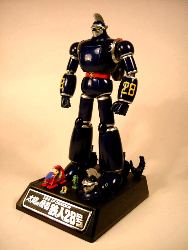 Annunciato ormai da tempo, arriva in Giappone alla fine del mese di novembre 2008 (e in Italia nel mese di dicembre, giusto in tempo per essere piazzato tra i doni sotto l'albero di Natale), l'ultimo nato in casa Bandai Soul Of Chogokin, il Tetsujin 28 Go, versione riveduta ed aggiornata del Tetsujin 28, già uscito come gx-24 in versione soc e papà di tutti i robottoni che dal 1963 (anno della sua nascita) in poi si sono di lì a poco succeduti scatenando una vera e propria tendenza. Tetsujin 28 Go, noto in Italia come Super Robot 28, è una storia articolata in una cinquantina di episodi che differisce sensibilmente dalle serie anime robotiche di quegli stessi anni caratterizzate da mecha con dotazioni, in termini di armamenti, più o meno ricche; infatti il Tetsujin 28 Go, così come il suo celeberrimo predecessore, si limita a combattere semplicemente a pugni e calci senza ricorrere all'uso di armi. I protagonisti della serie sono praticamente gli stessi del prequel, il T28, come nella serie del 1963 è infatti pilotato a distanza da un ragazzino di nome Shotaro tramite l'utilizzo di una valigia contenente i comandi del robot. Forse memore delle esperienze passate per cui il riscontro in termini di vendite del gx-29 Black Ox, storico avversario del T28, non è stato pari a quello della sua nemesi buona, Bandai ha deciso in questo caso di proporre 2 differenti versioni di questo modello e precisamente il gx-44 (corrispondente al solo Tetsujin 28 Go) ed il gx-44s (un vero e proprio set che,oltre al T28, contiene anche l'avversario Black Ox). Con questa scelta si è evitato di proporre il Black Ox come uscita soc indipendente e il conseguente rischio di un insuccesso in termini di vendite senza scontentare, allo stesso tempo, tutti coloro che desiderano affiancarlo al suo avversario. Personalmente ho deciso di acquistare il set completo, ed è di questo che nel corso della recensione vi andrò a dare informazioni, si parte............