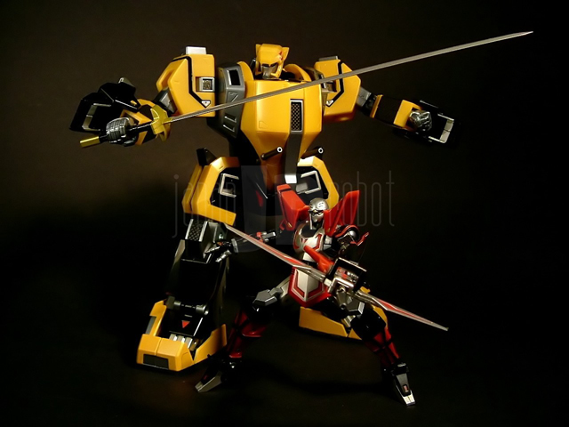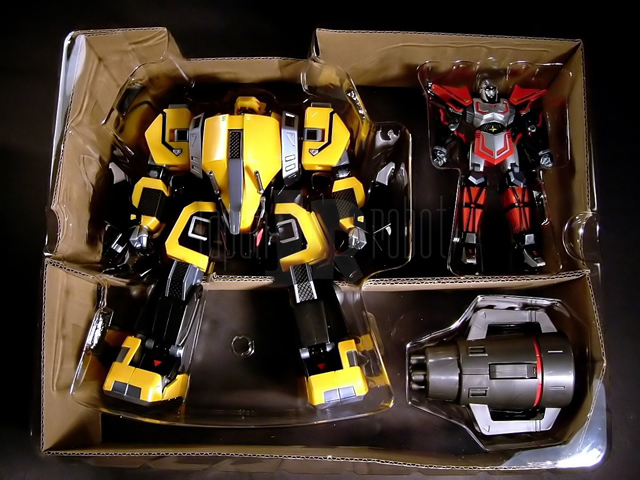 - Due blister di plastica trasparente impilati l'uno sull'altro nel primo dei quali troviamo il Tobikage, il Kurojishi (entrambi con mani chiuse a pugno preapplicate) e la mitragliatrice di quest'ultimo. Il secondo blister da invece alloggiamento alle mani di ricambio (due paia per entrambi, uno con dita estese ed uno chiuse a pugno per l'impugnatura delle spade), due spade a testa (una laser e una più lunga con lama per il Kurojishi, una normale e una con doppia lama per il Tobikage), il fucile e la balestra del Tobikage, la coda del Black Lion, due foderi per la spada a singola lama del Tobikage (uno applicabile alla schiena, uno utilizzabile come "baionetta").