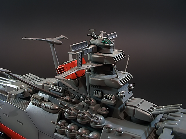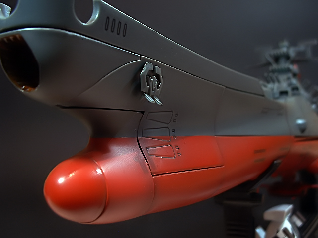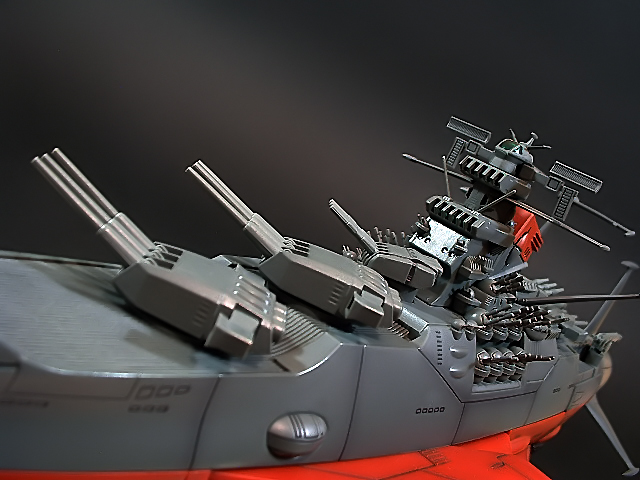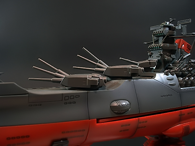 La Yamato è lunga 42 centimetri, è costruita quasi totalmente in plastica, le uniche parti in metallo sono le 5 batterie di cannoni poste sul ponte della nave, il fumaiolo centrale ed il reattore principale dei motori. Questo però non vuol dire che il modellino non goda di ottime rifiniture, esteticamente è molto bello e non presenta imperfezioni di nessun genere. La verniciatura è stata leggermente sfumata in corrispondenza delle pennellature incise sullo scafo della nave, in questo modo si è tolto l’effetto “piatto” che una colorazione liscia avrebbe dato all’intero lavoro.