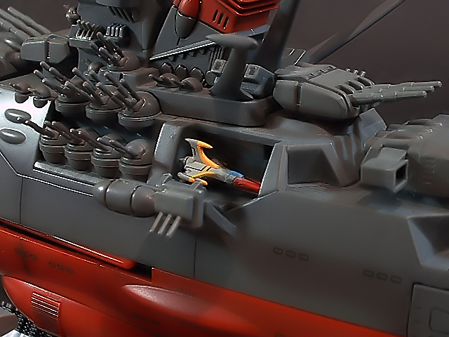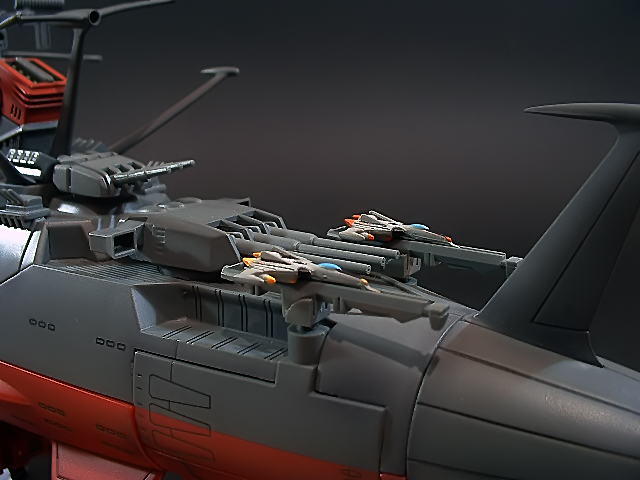 Sicuramente la Bandai ha fatto un buonissimo lavoro con questa riproduzione della mitica Corazzata Yamato, ogni dettaglio è al proprio posto ed il livello di fedeltà con la controparte televisiva è veramente perfetto. La cosa che però mi fa storcere il naso è la scelta fatta dai progettisti Bandai, si è voluto, visivamente parlando, “spaccare” in due parti distinte il modellino. Il lato destro è praticamente quello operativo, dove trovano alloggio quasi tutti i pulsanti e comandi di rotazione, mentre il lato sinistro è decisamente quello espositivo. Proprio questa scelta secondo me penalizza la bontà della realizzazione, i tasti messi in bell’evidenza sulla fiancata destra non sono il massimo in termini di estetica, certamente si sarebbe potuto pensare a ben altra posizione, magari sotto la chiglia della nave lasciando così la libertà di decidere su quale lato esporre la Yamato. Nonostante questa piccola critica, reputo il modellino Bandai sicuramente una delle migliori realizzazioni presenti sul mercato della Corazzata Spaziale Yamato. Proprio negli ultimi anni la Bandai ha superato se stessa realizzando un mastodontico kit dedicato a questa bellissima astronave. Pensate che una volta terminato l’assemblaggio ci si trova davanti ad una Yamato di circa 80 centimetri di lunghezza, con tanto di telecomando per movimenti, suoni e luci di cui è stata dotata questa meraviglia, qui però entriamo in un campo completamente diverso……..alla prossima recensione, Paolo MK2.