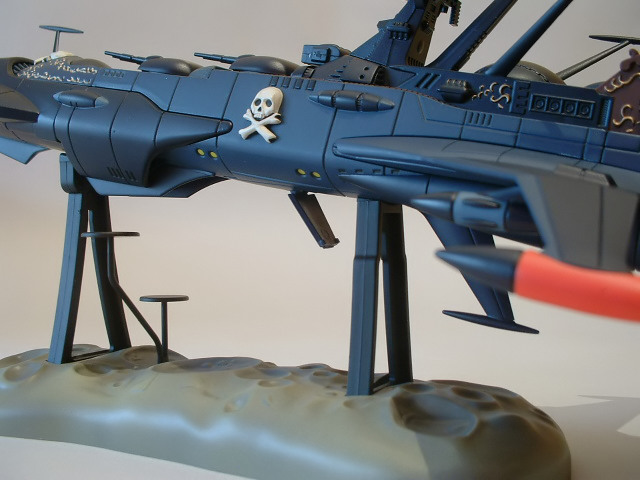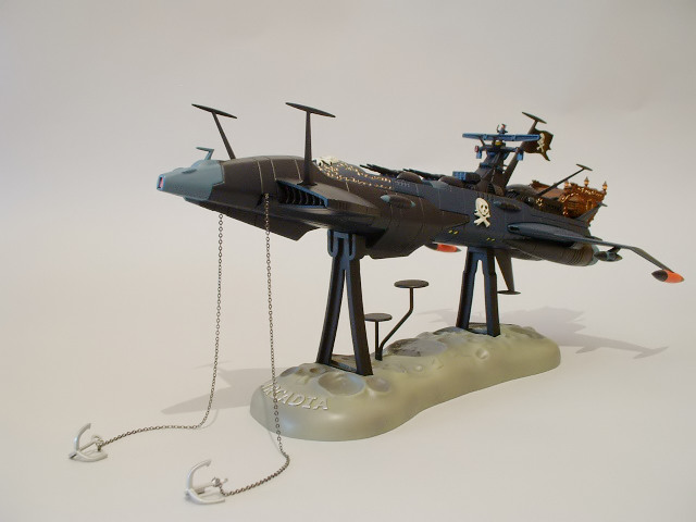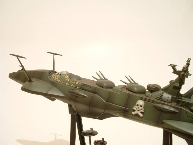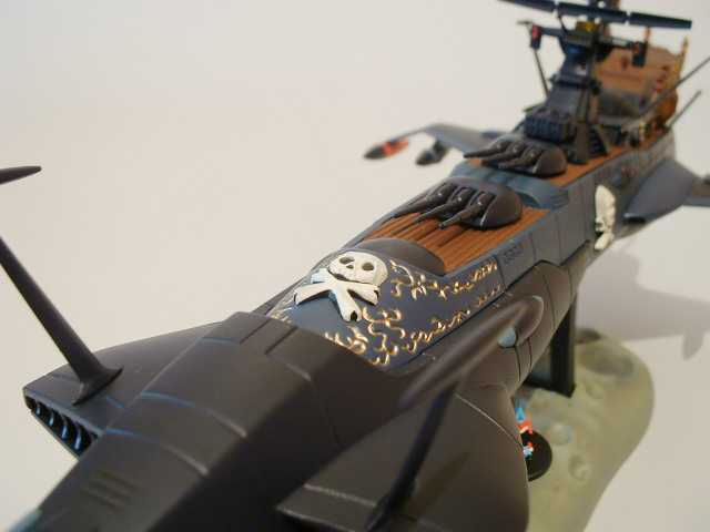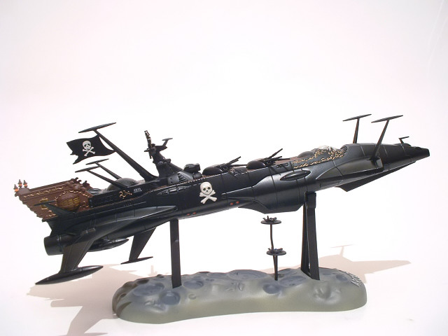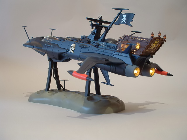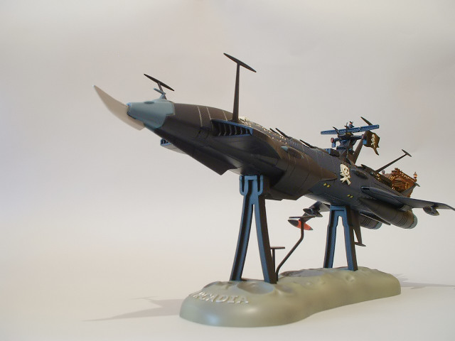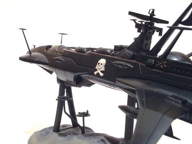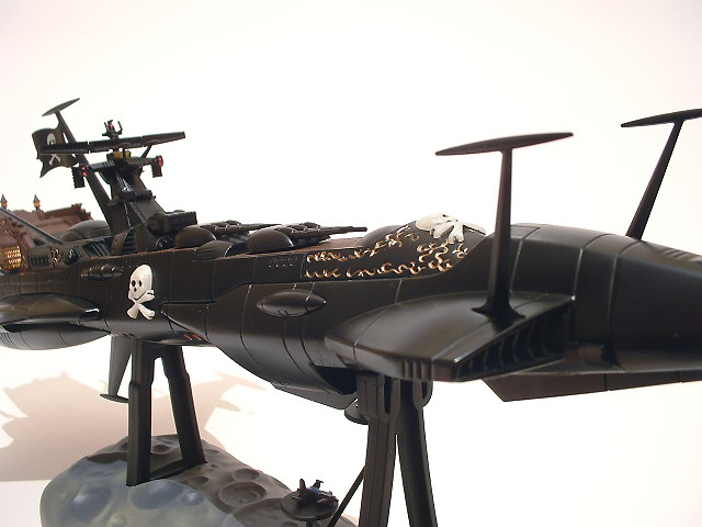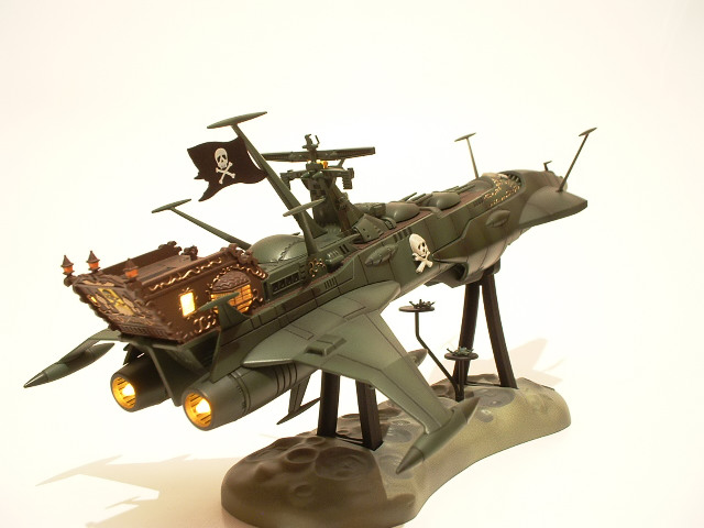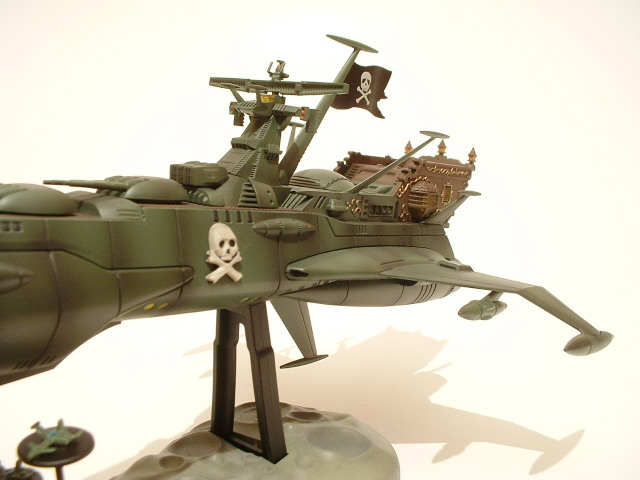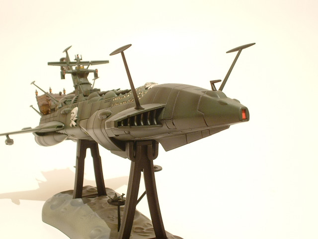 Cosa dire ancora, per gli appassionati del pirata dello spazio questa Death Shadow rappresenta la ciliegina sulla torta che mancava, personalmente l’ho attesa con trepidazione fin dalla prima foto apparsa in rete. Da sempre l’astronave di Leiji Matsumoto è nei cuori di tutti noi, Aoshima è riuscita a far rivivere il mito di Capitan Harlock con una realizzazione davvero stupenda, impedibile veramente!!! Ogni volta che mi fermo a guardare la mia vetrina mi sembra di ritornare bambino, mi sembra di sentir queste parole………Un pirata tutto nero che per casa ha solo il ciel, ha cambiato in astronave il suo velier….nel suo occhio c’è l’azzurro nel suo braccio acciaio c’è, nero il suo mantello mentre il cuore bianco è….Capitan Harlock…….Capitan Harlock………..