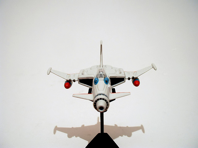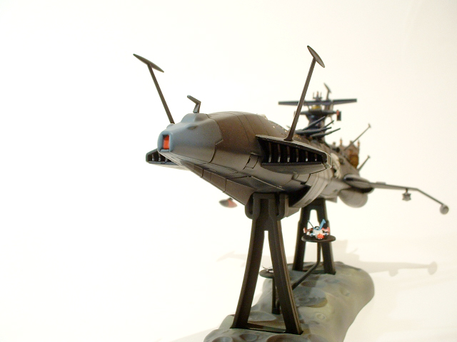 Come tradizione Aoshima il modello è quasi totalmente in metallo, il suo peso è di 780 grammi per 33 centimetri di lunghezza. Ha un’apertura alare di 17 centimetri nella parte posteriore, mentre le prese d’aria in prua hanno una sporgenza complessiva di 8 centimetri. Qualche altro dato, altezza della torre di comando 4,5 cm – altezza pennone porta bandiera 5 cm , lunghezza batteria cannoni (2 in dotazione) 4 cm – altezza antenne di prua 3 cm.