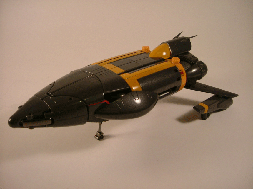 La trasformazione delle 2 Buster Machines in GunBuster non si può certo dire che sia semplice, Bandai ha concentrato in questo modello una serie di soluzioni tecniche che hanno dell'incredibile, non penso di sbagliare se affermo che il GunBuster è certamente il modello tecnicamente più complesso e sofisticato sinora prodotto da Bandai per la linea S.O.C. La sola trasformazione dei piedi ha dello stupefacente, non so quante volte l'ho ripetuta, estasiato dalla perizia tecnica con cui è stata concepita. La prima volta che ho trasformato il modello ho avuto difficoltà in un paio di passaggi, complice l'assenza di qualche illustrazione in più sul libretto d'istruzioni che avrebbe fatto sicuramente un gran comodo. In certi momenti si ha il timore di rischiare di spaccare tutto, ma niente paura, come tutti i S.O.C. anche il GunBuster è assai resistente. Ad ogni modo una volta eseguita la trasformazione la si può poi realizzare nuovamente con facilità nel giro di pochi minuti senza alcun problema di sorta. Peraltro il sistema a cannocchiale per l'estrazione delle cosce dalle gambe, pur essendo analogo a quello del gx-27, non riconosce gli arcinoti limiti di instabilità di quest'ultimo essendo stato in questo caso ottimizzato grazie all'adozione di due fermi per coscia che bloccano lo scorrimento della gamba a fine corsa.